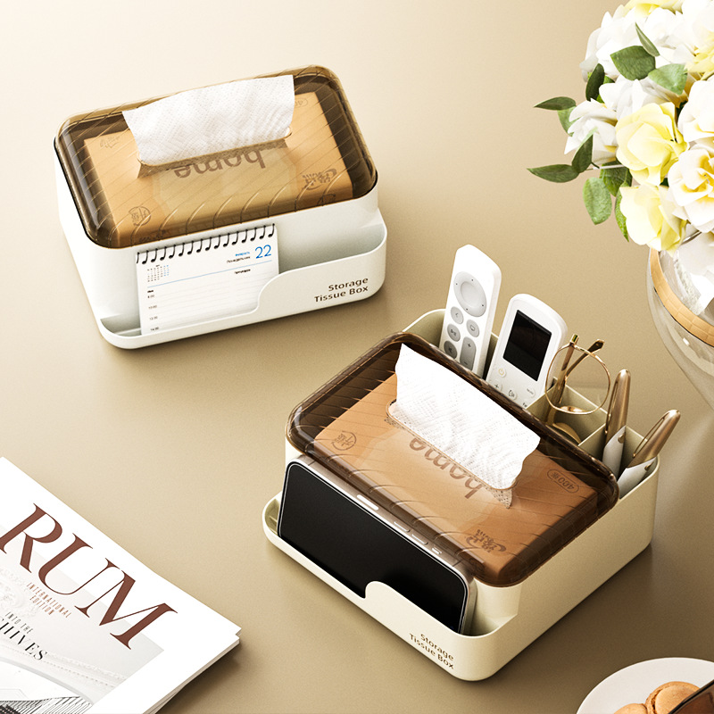 ティッシュボックスリビングルームプラスチックティッシュボックスデスクトップ収納ボックスコーヒーテーブルレストラン多機能リモコン収納ティッシュボックス
