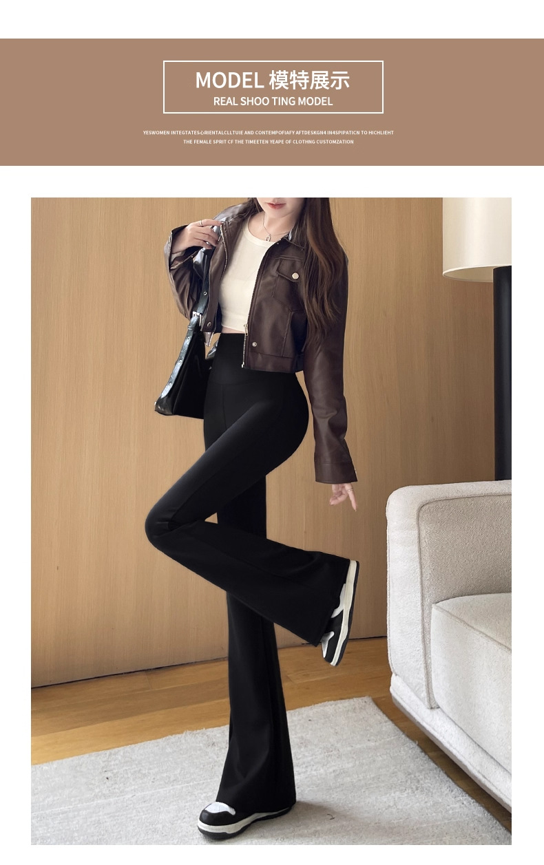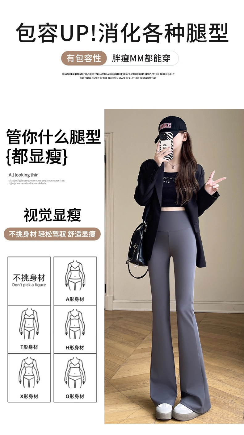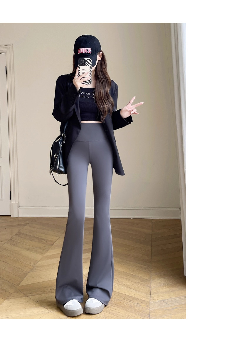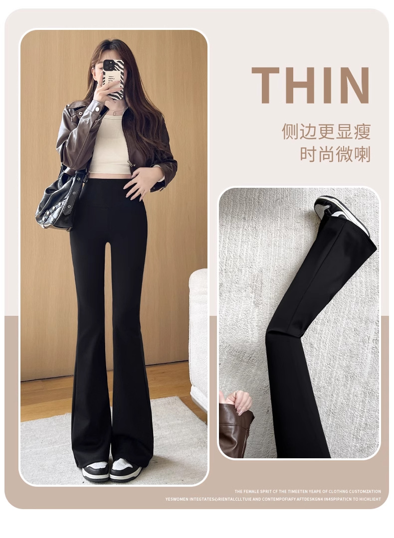 女性が外で履くための黒のレギンスフレアパンツ、ハイウエスト伸縮性スリムパンツ2025春夏新作ナローバージョン馬蹄スリッパ