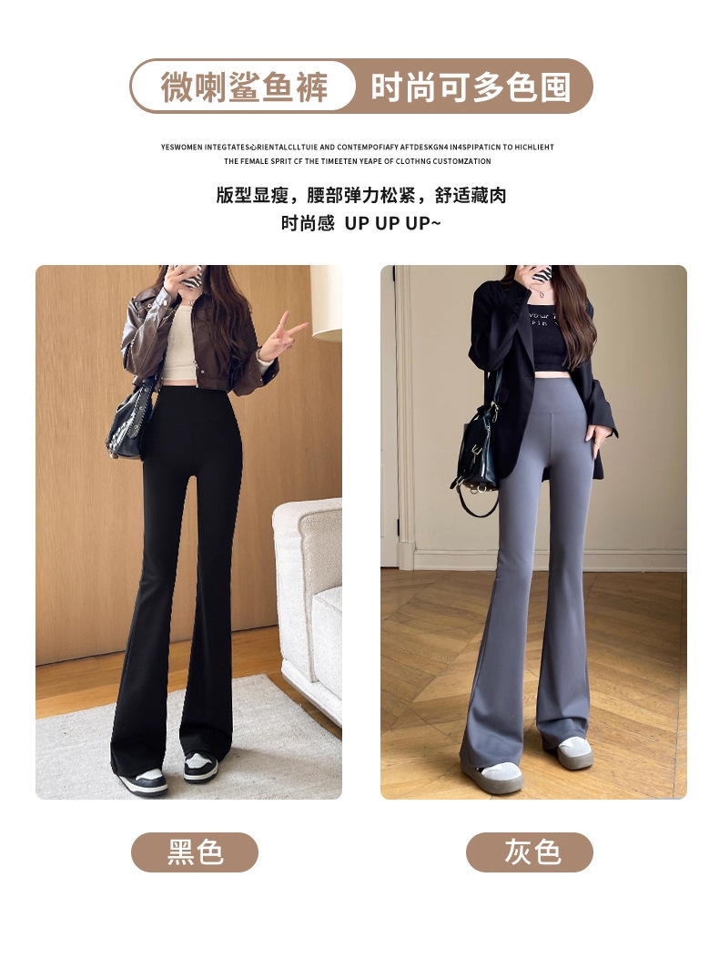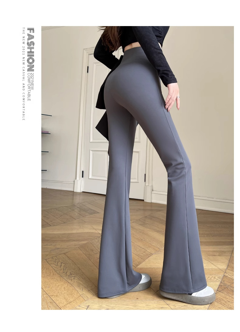 ハイウエストのマイクロフレアシャークパンツ、エクストラロングドレープ、スリムなアウターウェア、高弾性カジュアルヨガボトムスフレアパンツ、女性用春秋