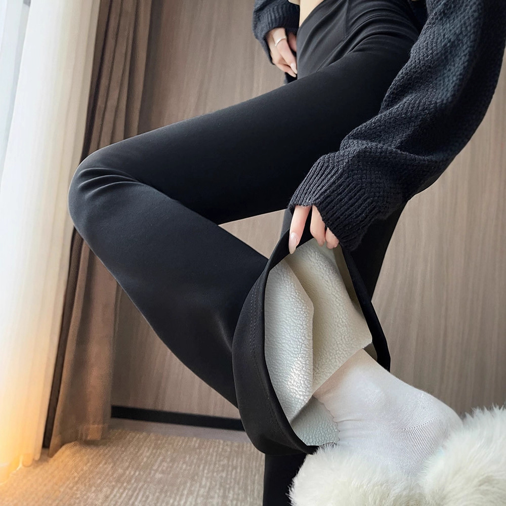 羊羔绒微喇鲨鱼裤女外穿秋冬季加绒加厚高腰提臀打底裤瑜伽喇叭裤