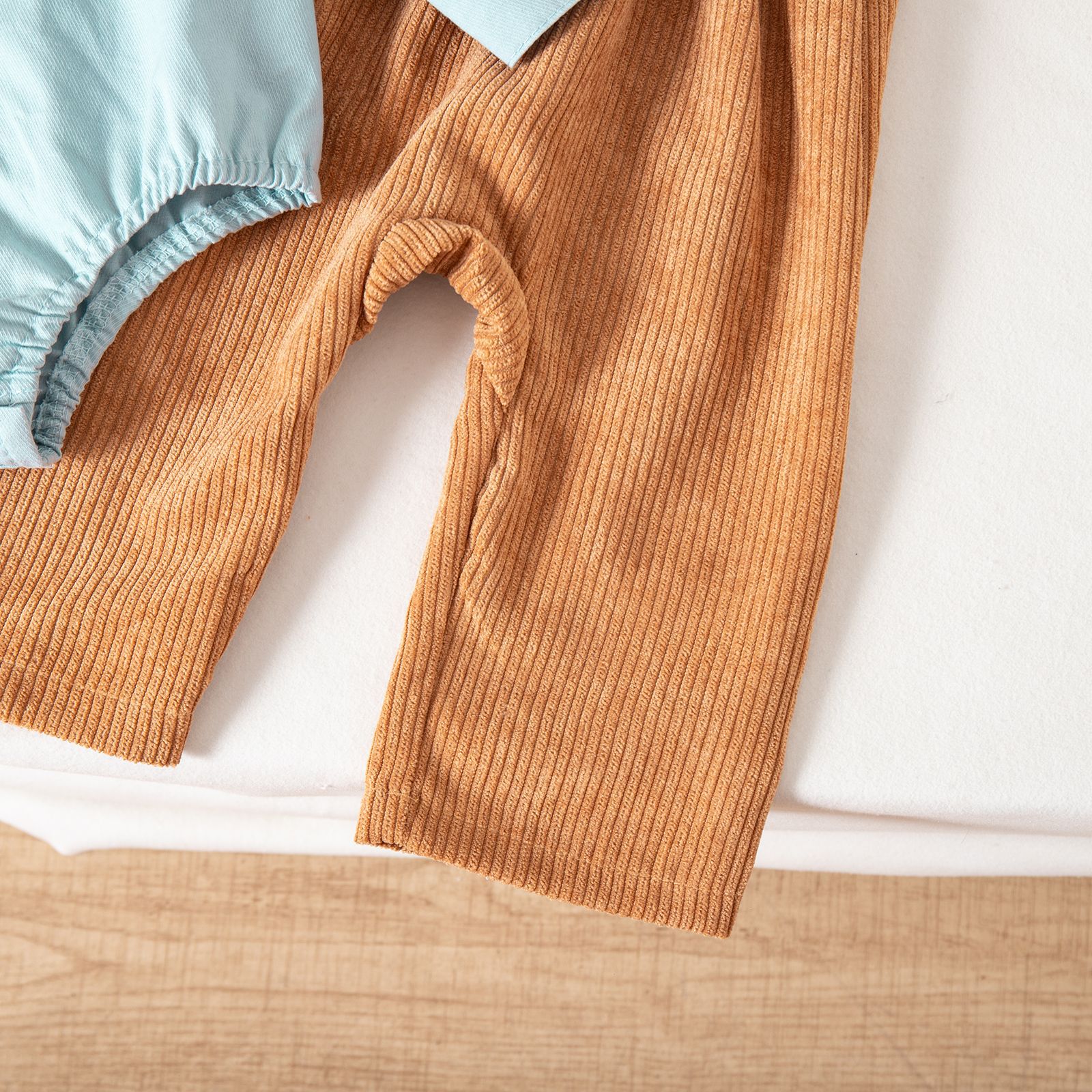 春と秋の新型子供セットカジュアル杏色長袖のガードルのサイドポケットの足首のズボンセット