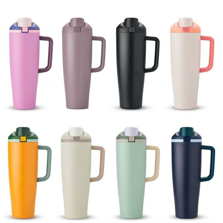 新型大容量ステンレスストロー保温カップ男女子車載カップ高顔値携帯ダブルコーヒーカップ