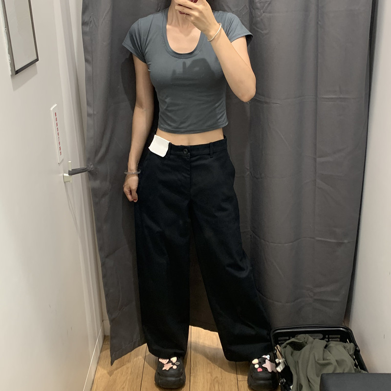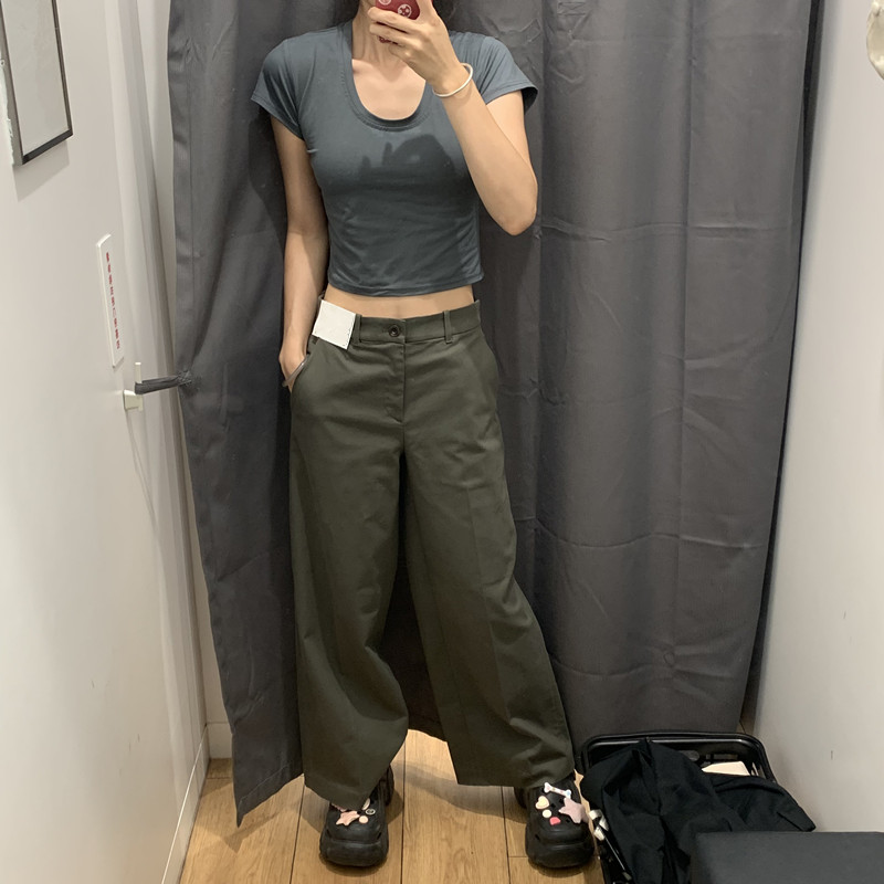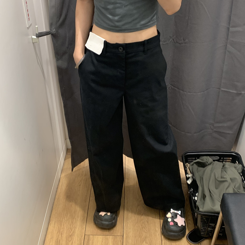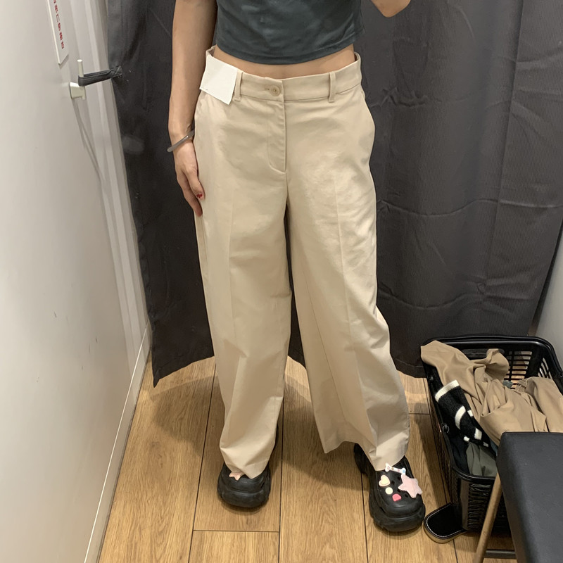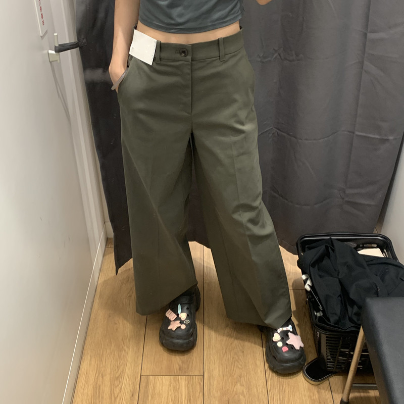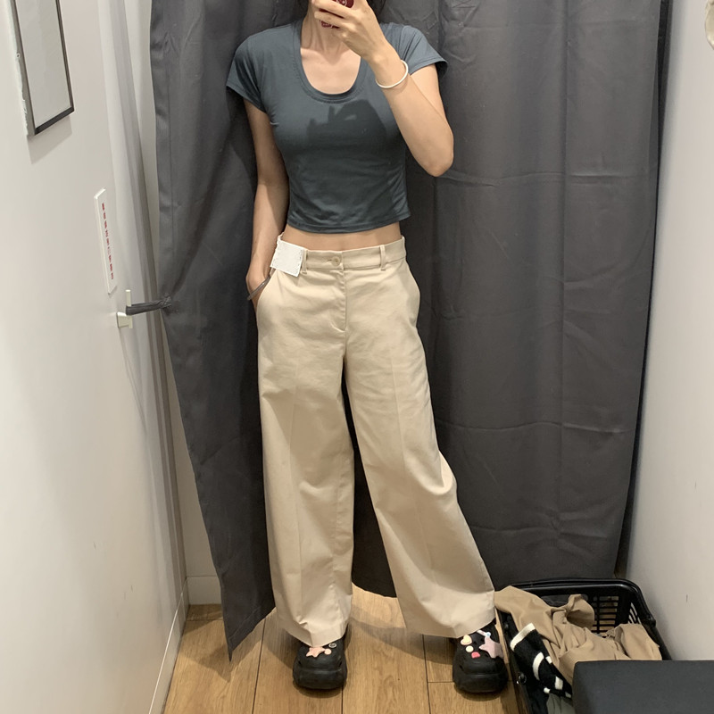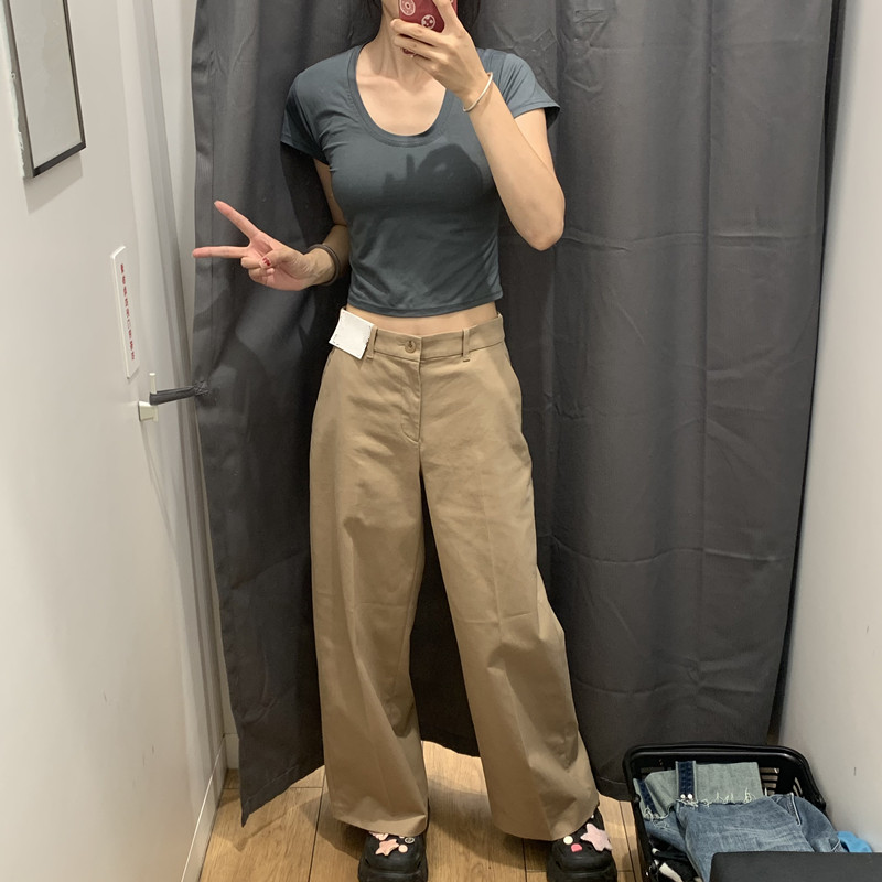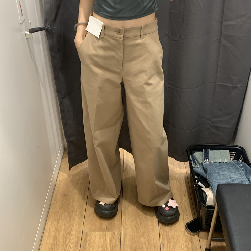 日本製シングル婦人服 24 秋の新作綿混紡ワイドレッグパンツカジュアルパンツ多用途無地ワイドレッグパンツ女性用 469828