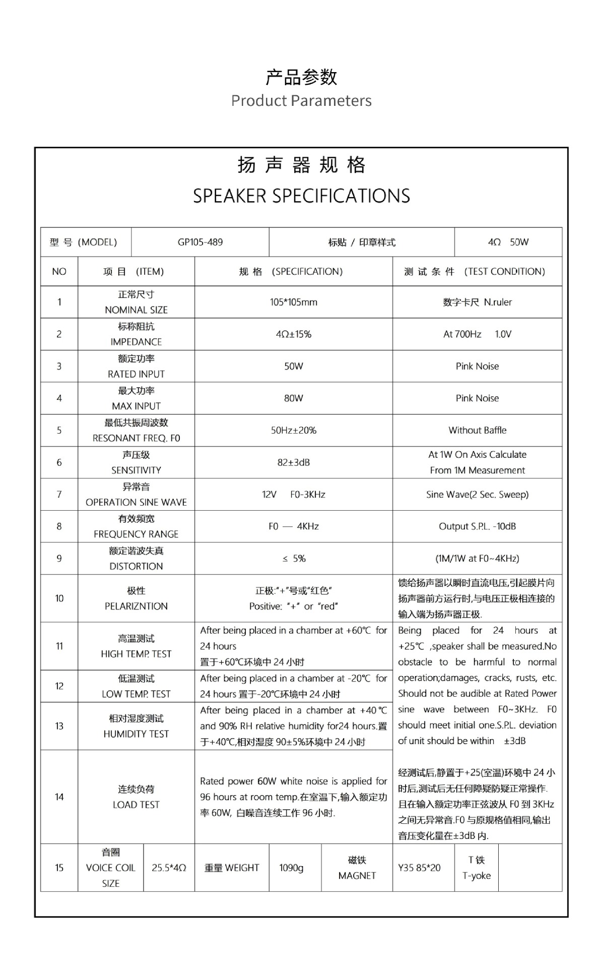种类 GP105-489-4Ω50W