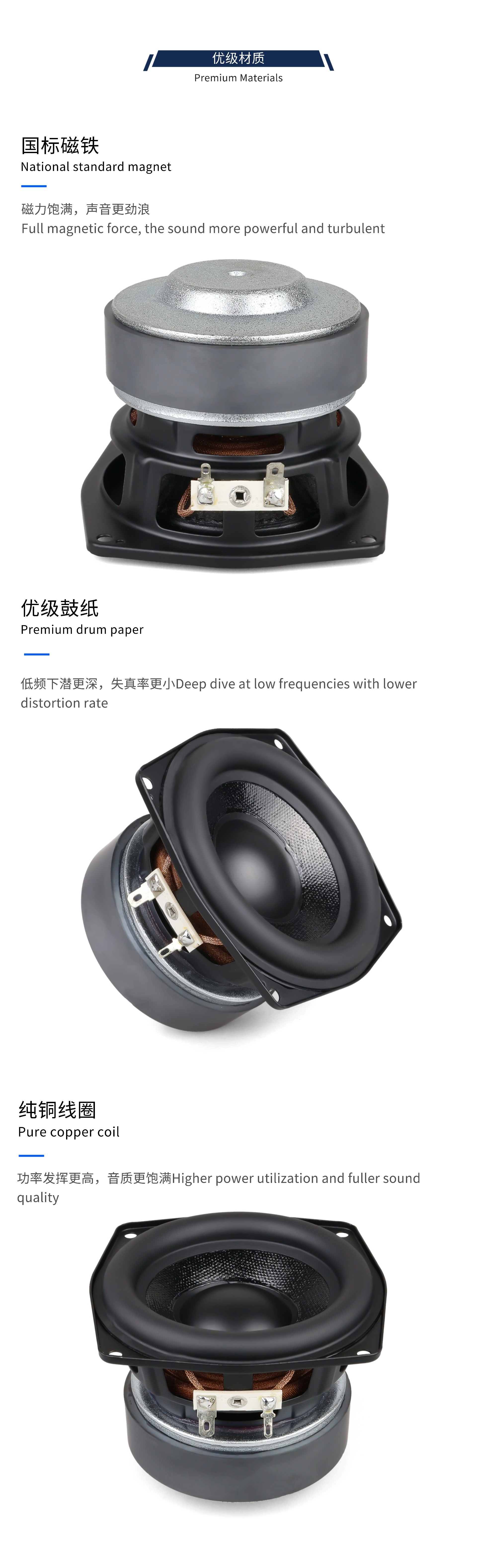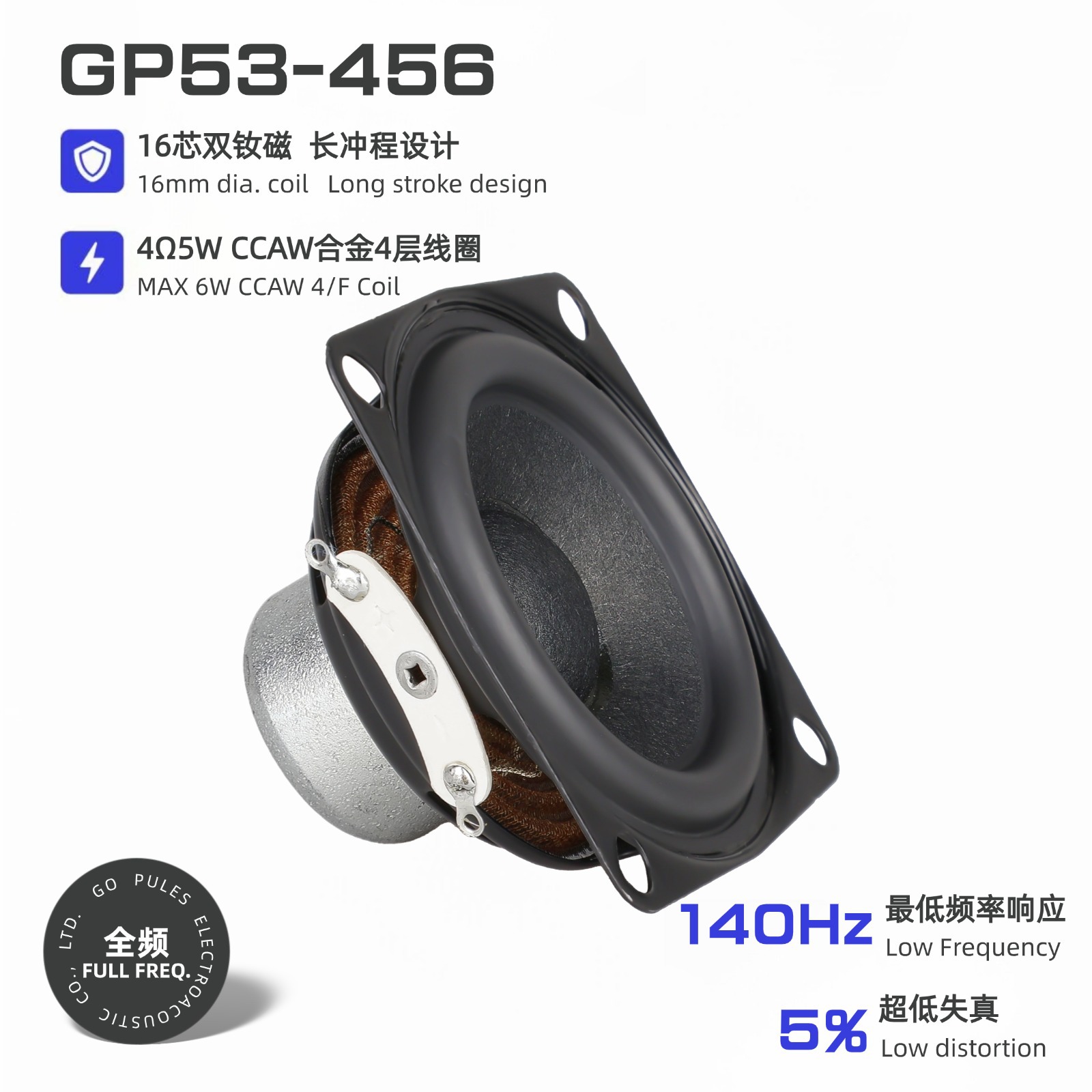 53mm2インチネオジム磁気ラッパ4欧5Wダブル磁気16芯ゴム辺長ストロークスピーカー全周波数スピーカー