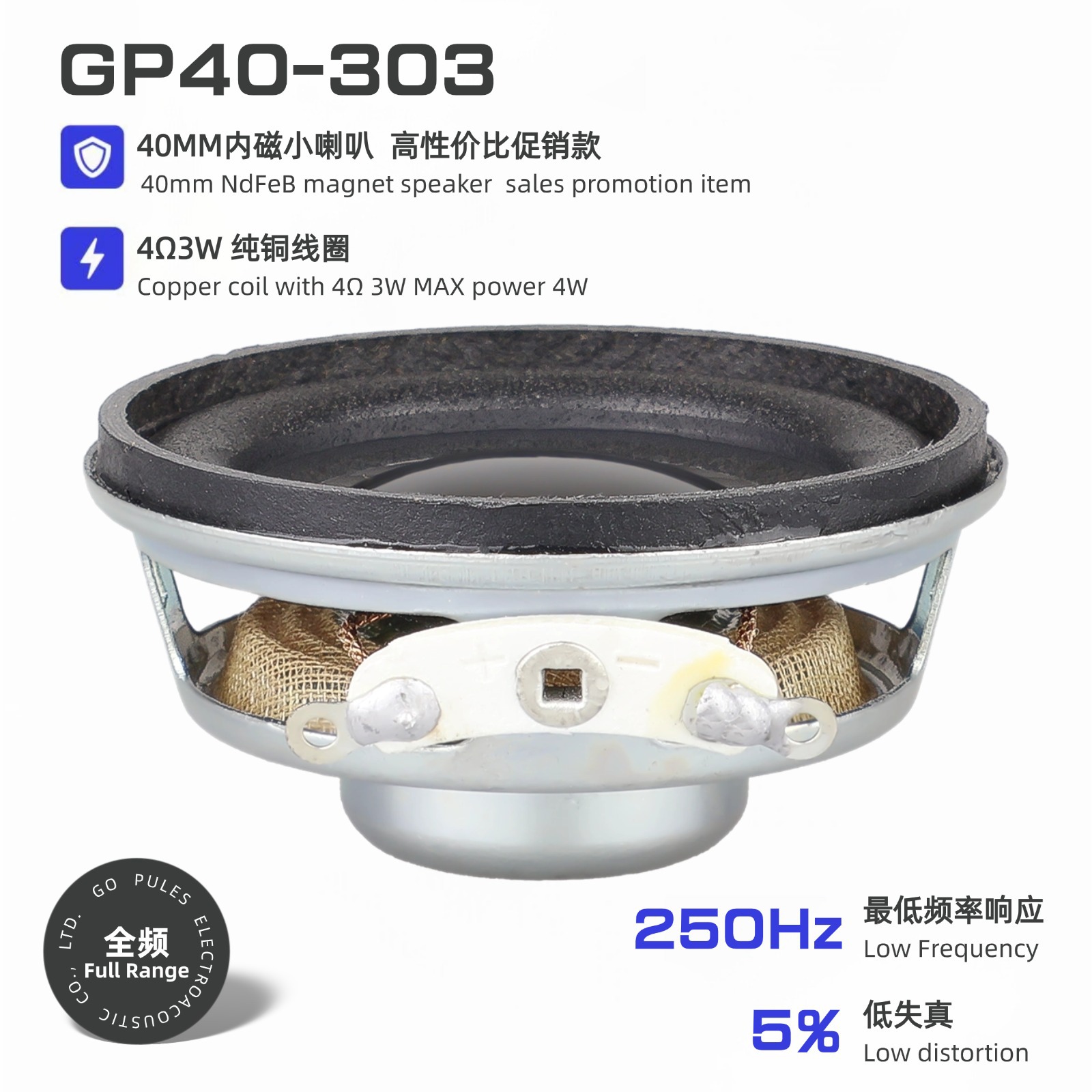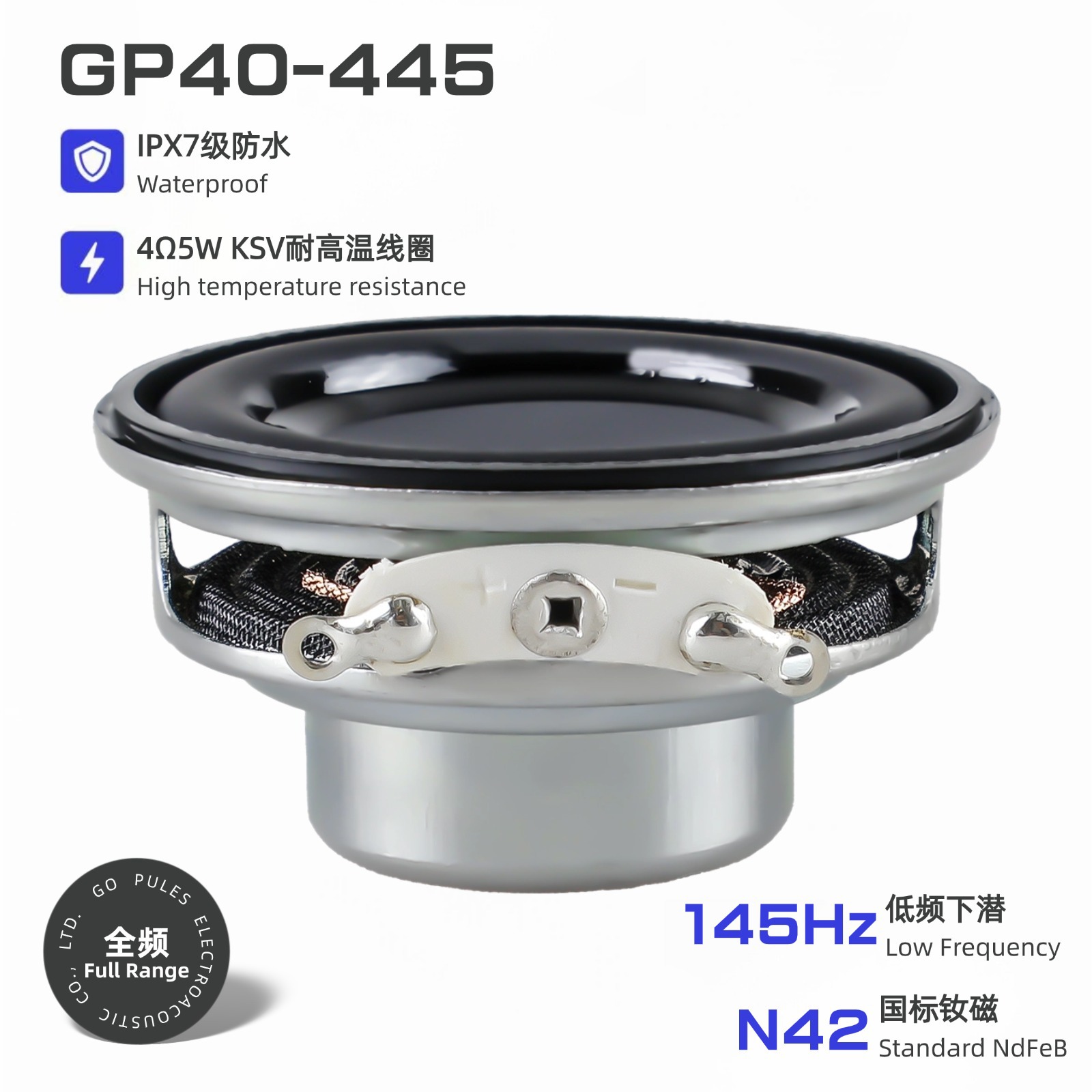 4寸重低音喇叭4欧50瓦25芯刚性松压盆Y35高性能磁钢IPX7户外防水