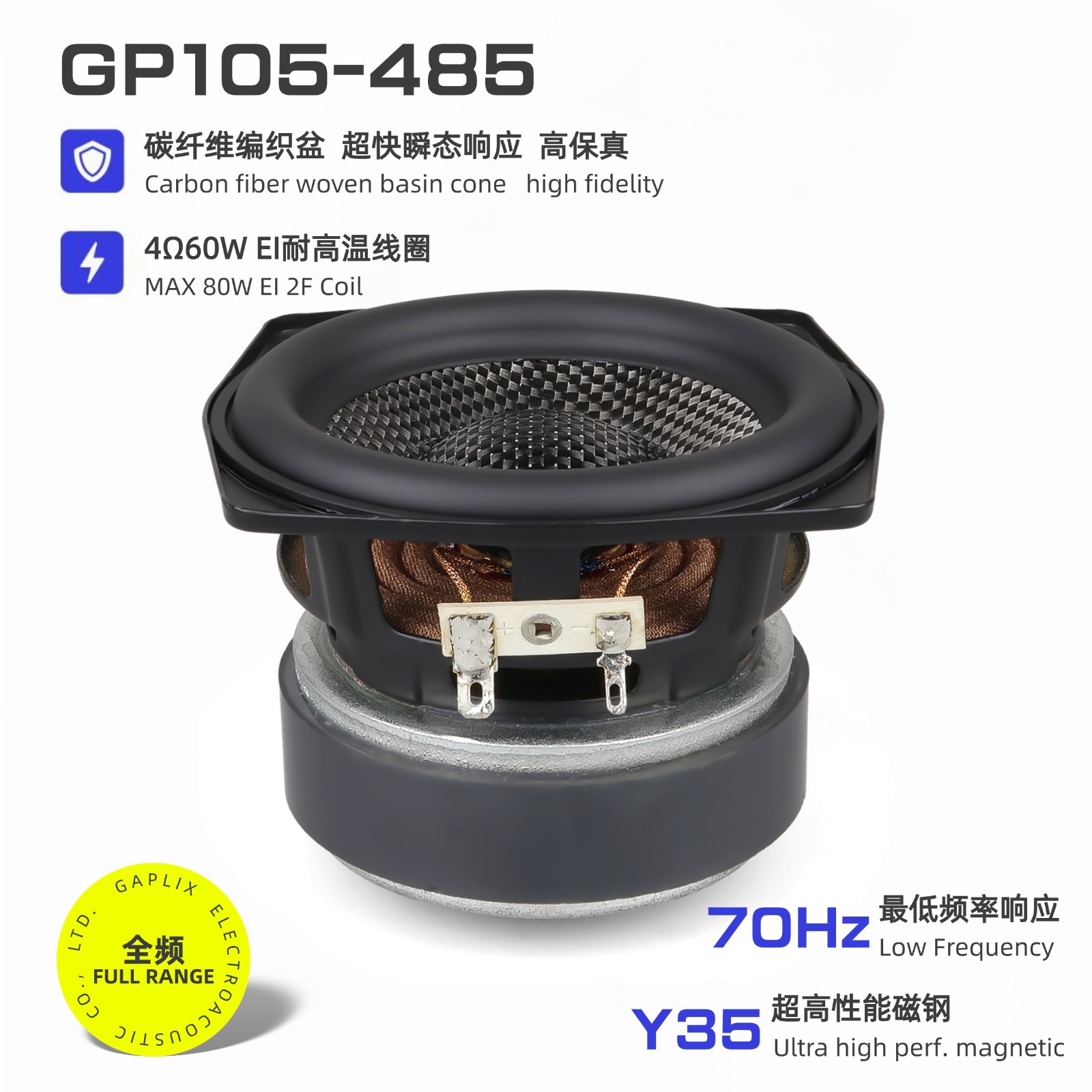 4寸重低音喇叭25芯4欧60W碳纤维编织盆Y35高性能磁钢高保真扬声器