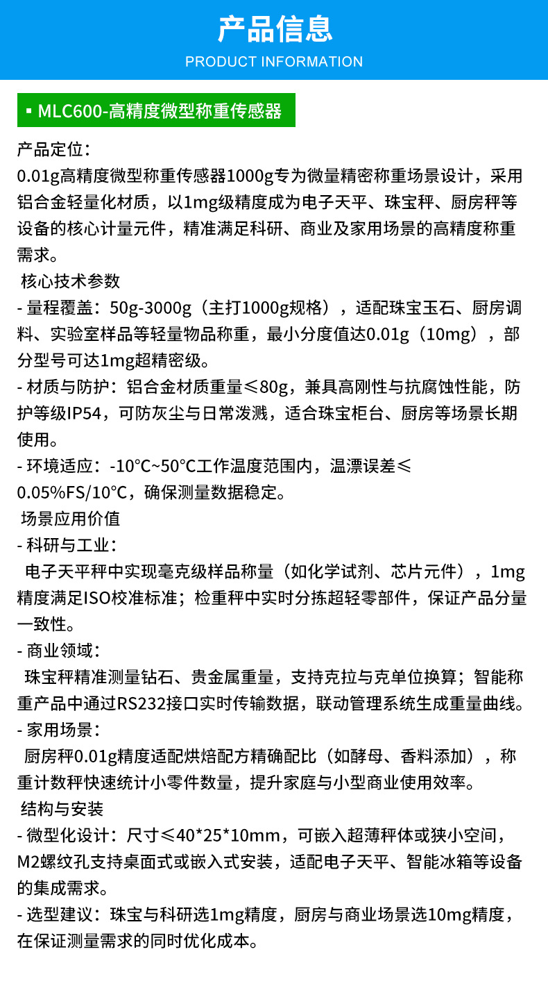 批发MLC700微型称重测力传感器手提秤箱包秤高精度微型称重传感器