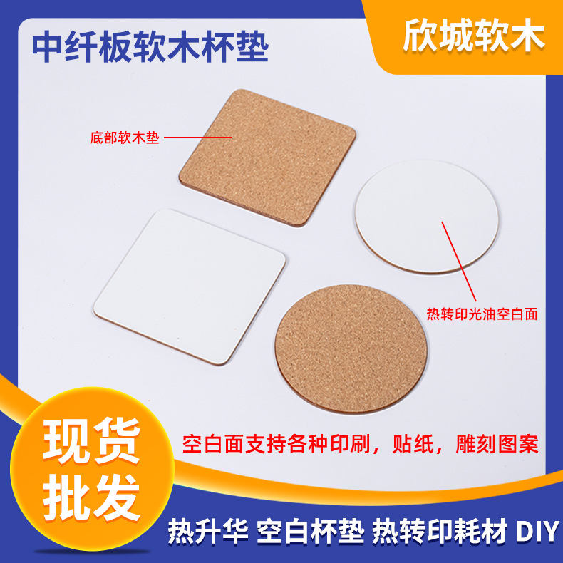 コルクコースター MDF 中繊維ボード コルクチップ ラウンド スクエア 昇華ブランクコースター 密度ボード コルクパッド