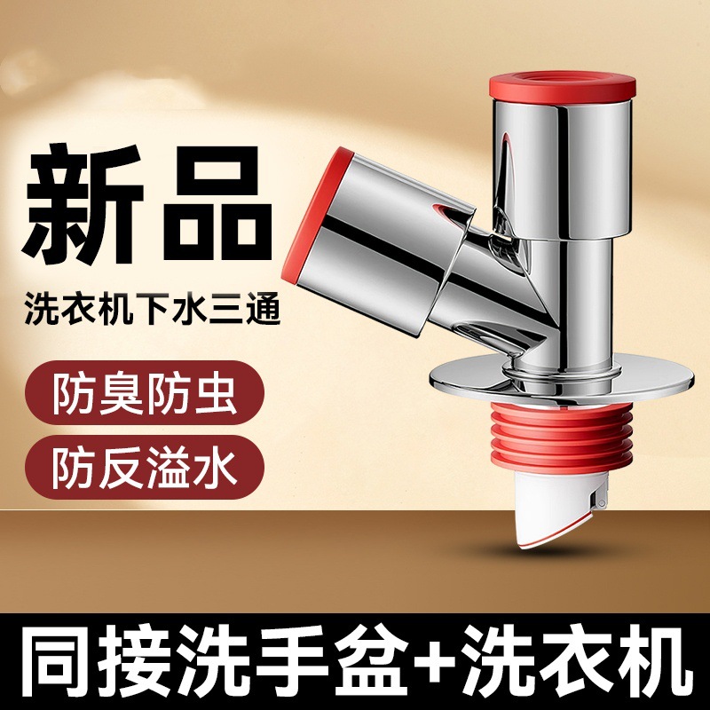|洗衣机水管三头通防臭神器洗手盆水三通二合一排水管分流器