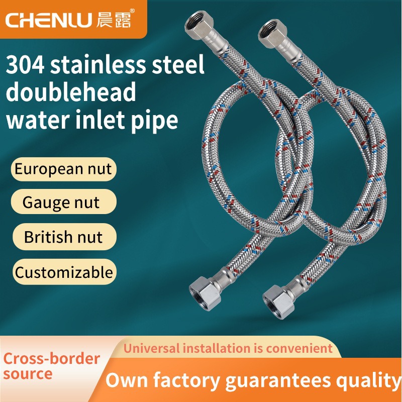 外国貿易直販 304 編組ホース給湯器給水ホース鋼線ホーストイレ給水ホースダブルヘッドキャップ