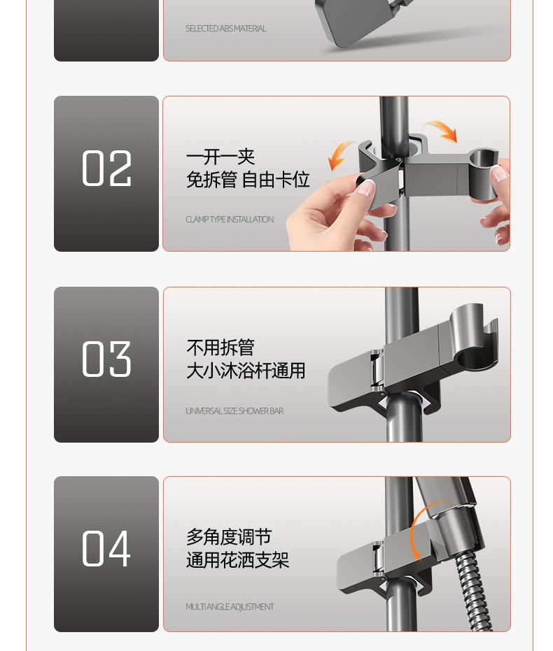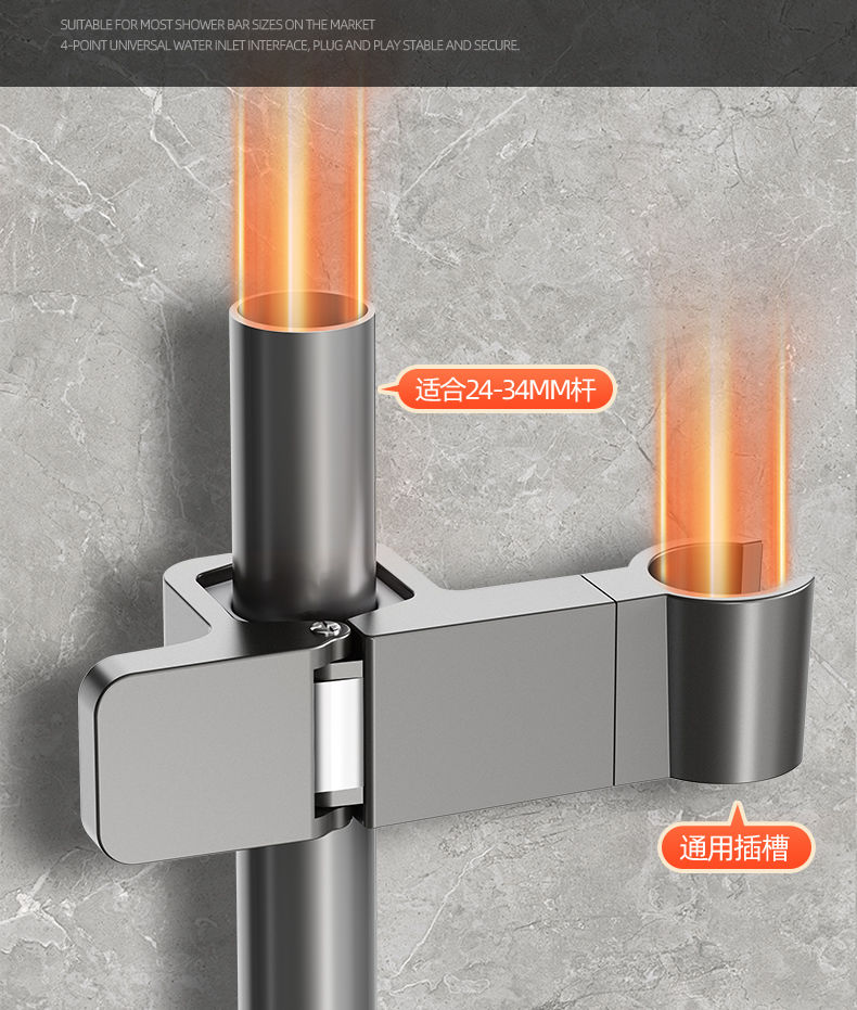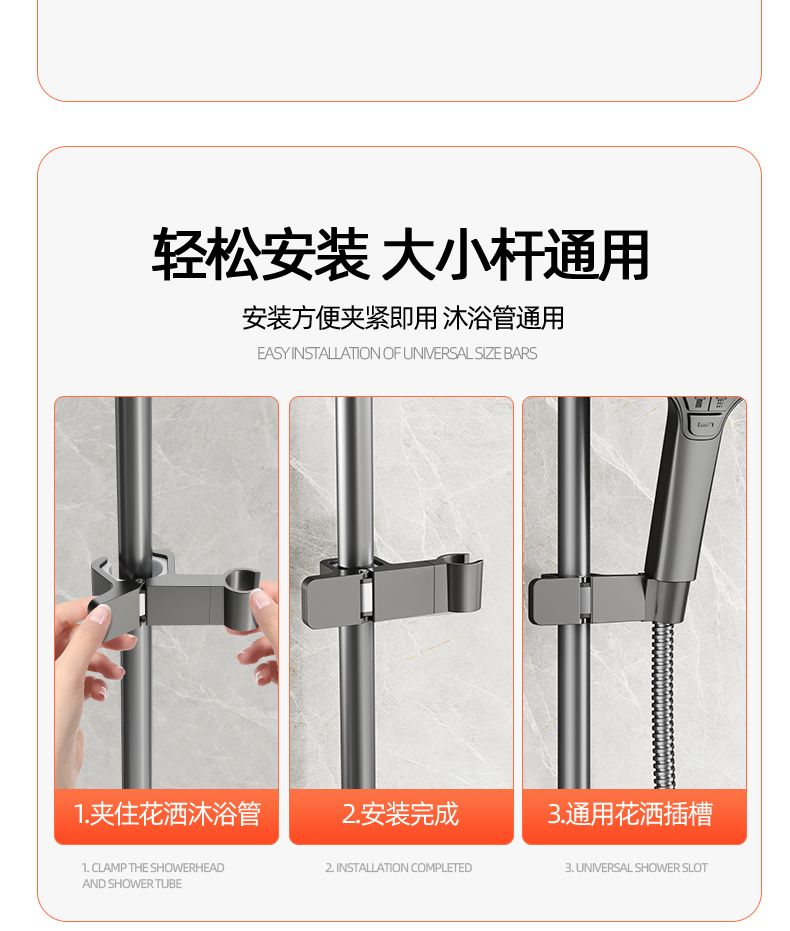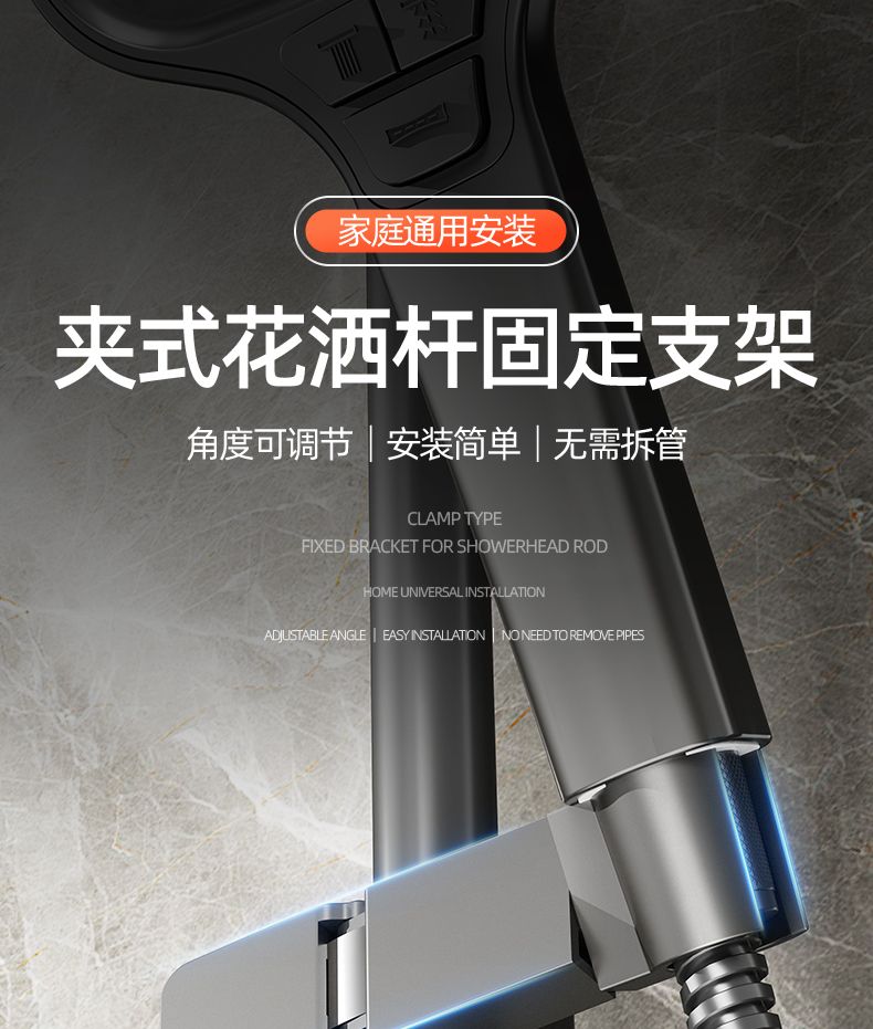 免拆管免打孔花洒支架卡扣升降杆固定座滑套中叉洗澡喷头固定夹子
