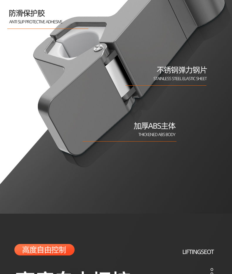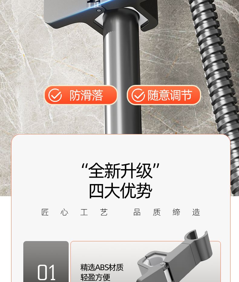 |轻奢吸盘花洒支架免打孔固定座淋浴喷头支架神器可调节墙底座架