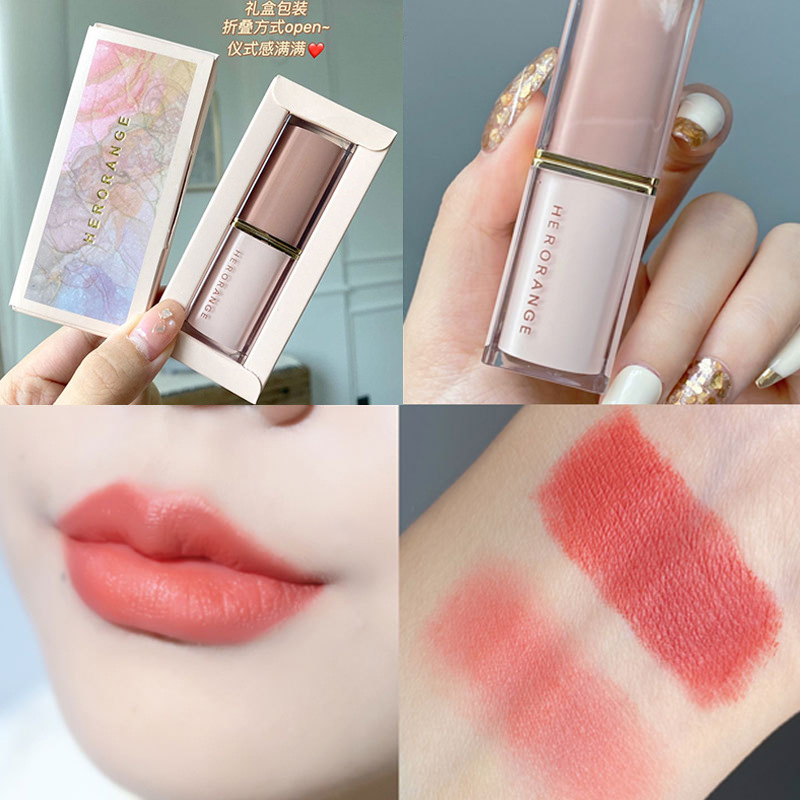 HERORANGE水晶角管口紅ベルベットのつや消し霧面は、色落ちしにくい平価で白い口紅が現れている