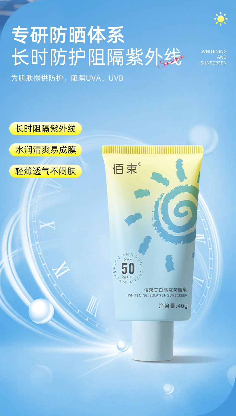 佰束美白隔離日焼け止め乳紫外線防止隔離カバー爽やかで脂っこい防水防汗日焼け止め