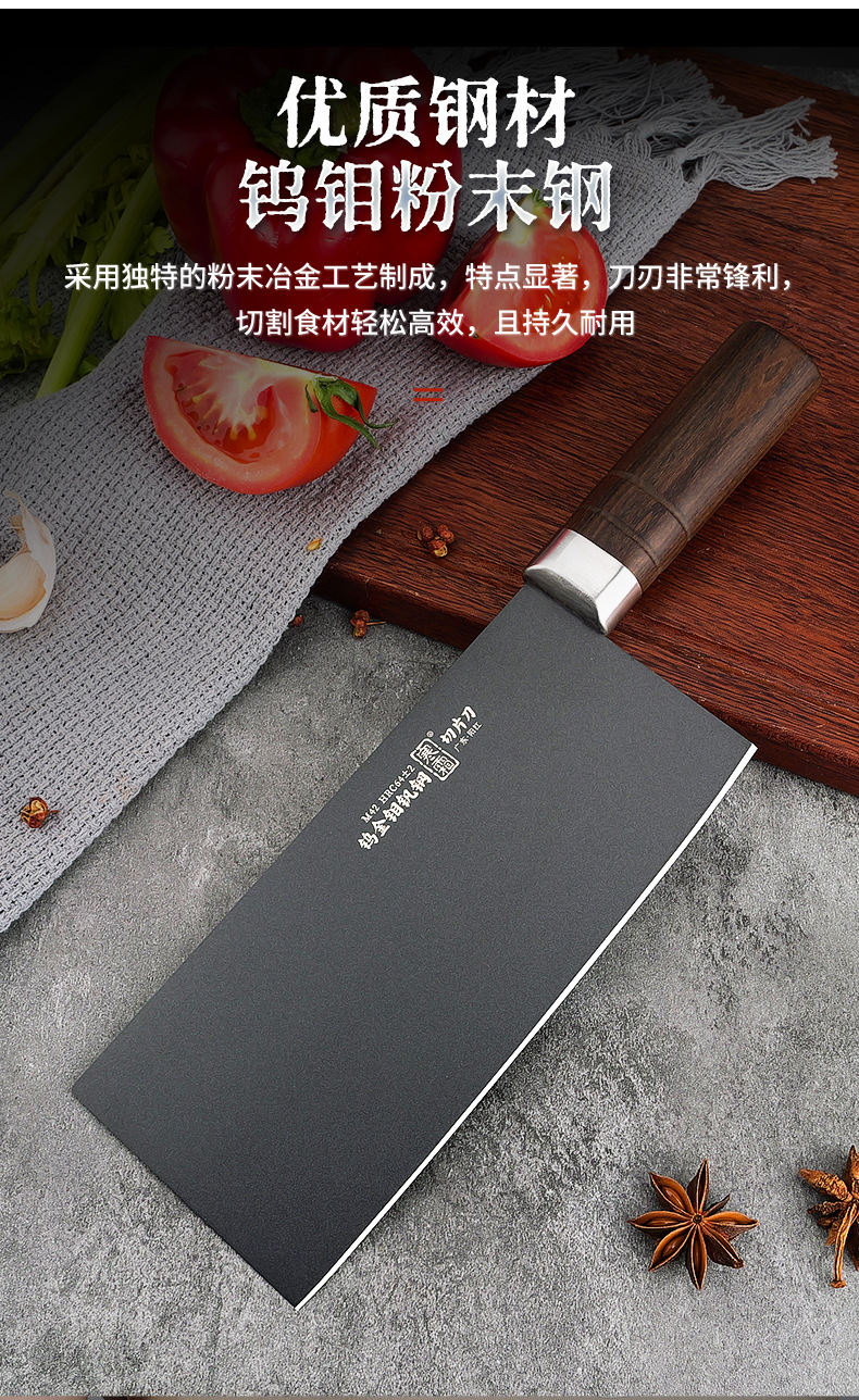 钨钼粉末合金钢切菜刀饭店商用切片刀家用厨房切丝切肉刀厨师用刀