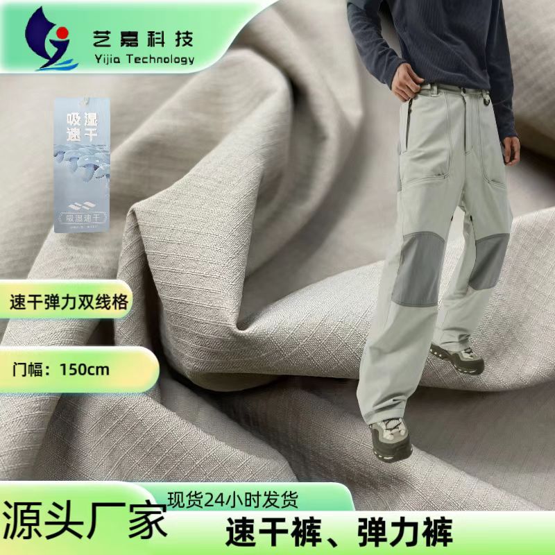 速乾性ナイロン弾性ダブルラインチェック速乾性パンツストレッチパンツナイロン生地卸売アウトドアスポーツオーバーオール