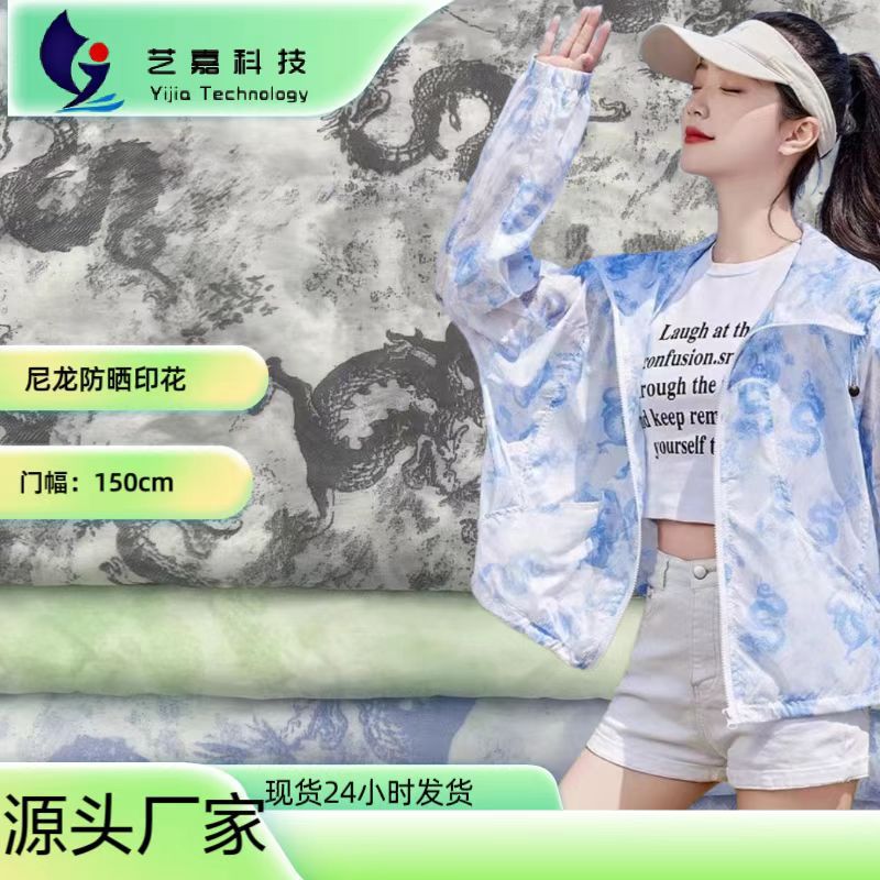 25年新製品ナイロンプリント日焼け止めUPF50クール通気性軽量屋外防水性と耐紫外線性