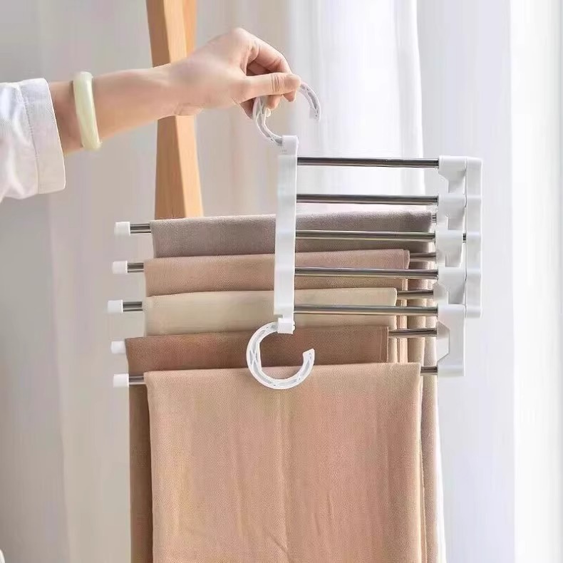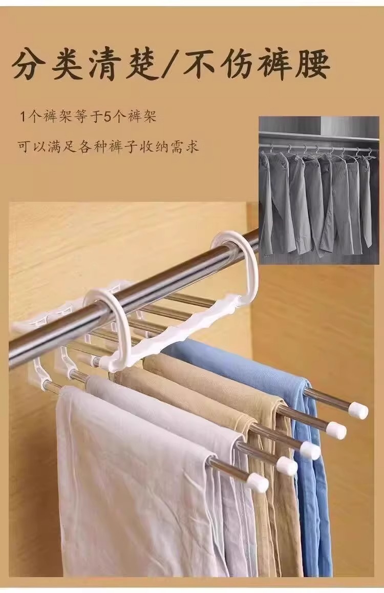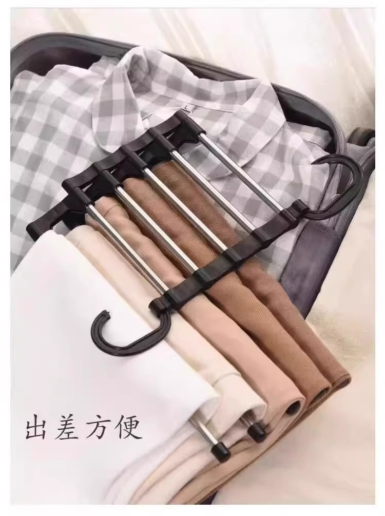 ステンレスズボン掛け折り畳み伸縮多機能無痕滑り止めズボン掛け家庭用たんす多層服掛けズボン掛け