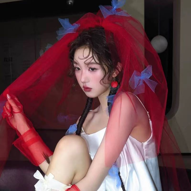 新娘复古装饰个性头纱可爱订婚婚纱摄影道具旅拍头饰拍照