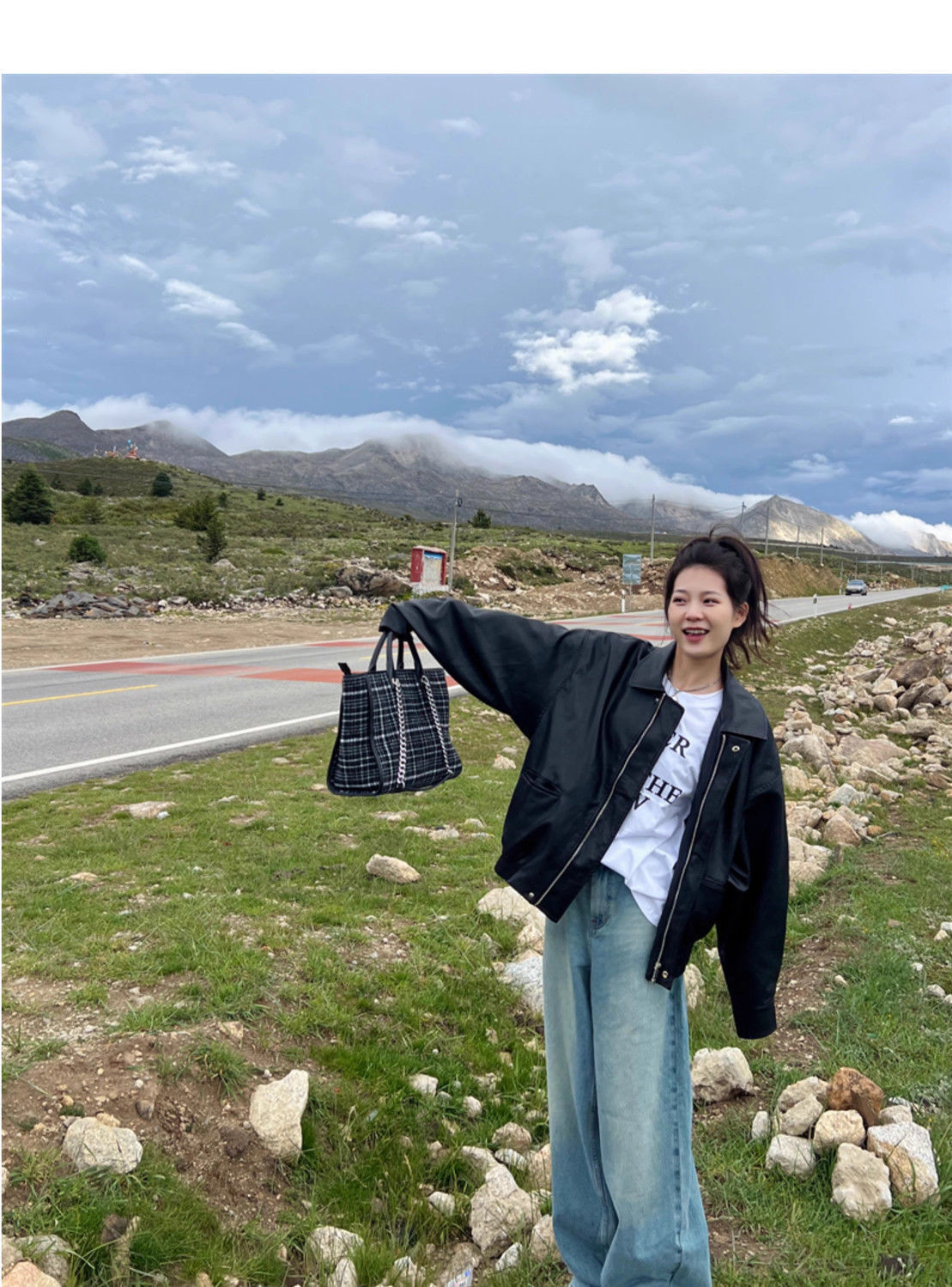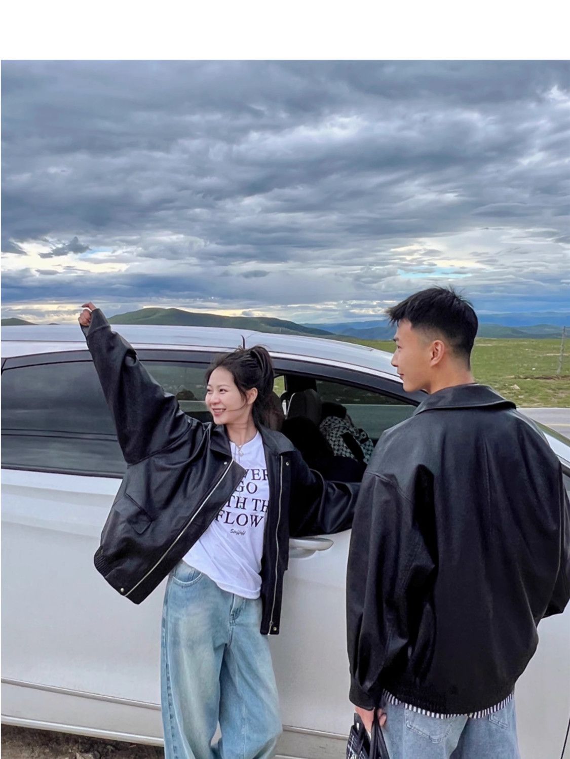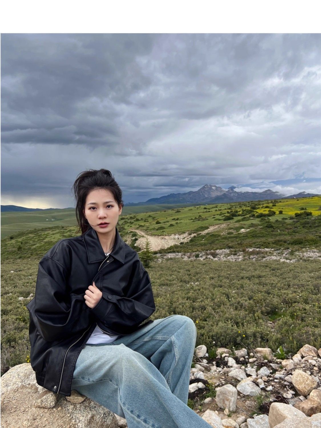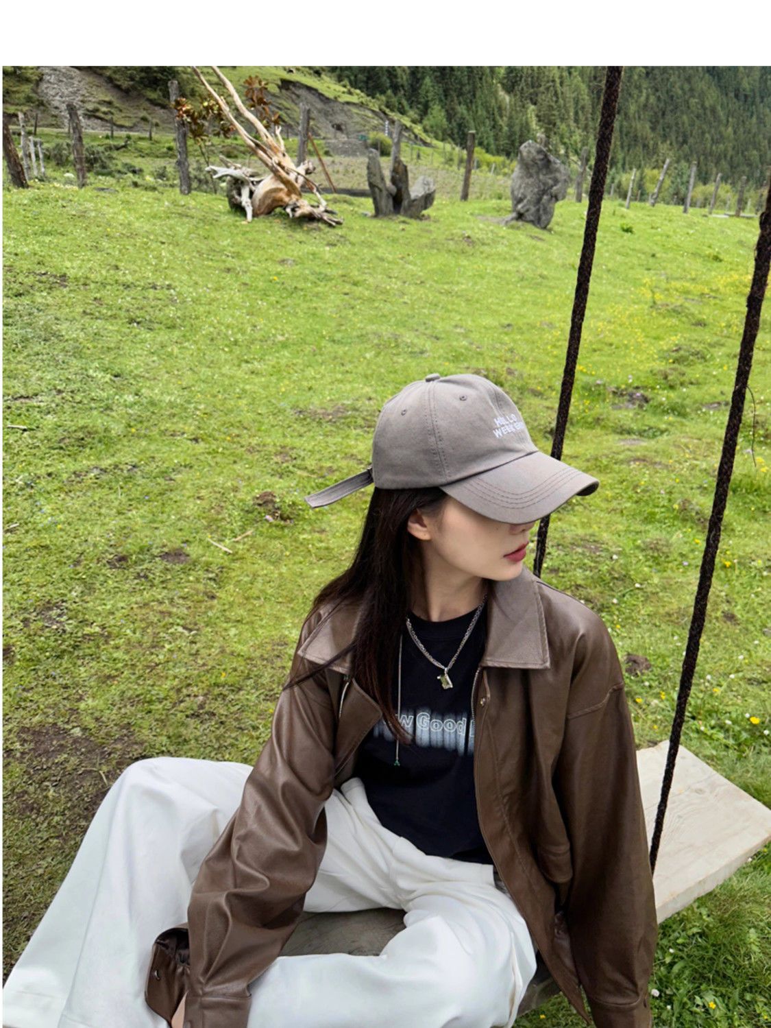 アメリカンブラウンレトロダメージ加工ルーズレザージャケット女性のための春と秋2025新しいルーズ韓国スタイル暖かいジャケットトレンディ