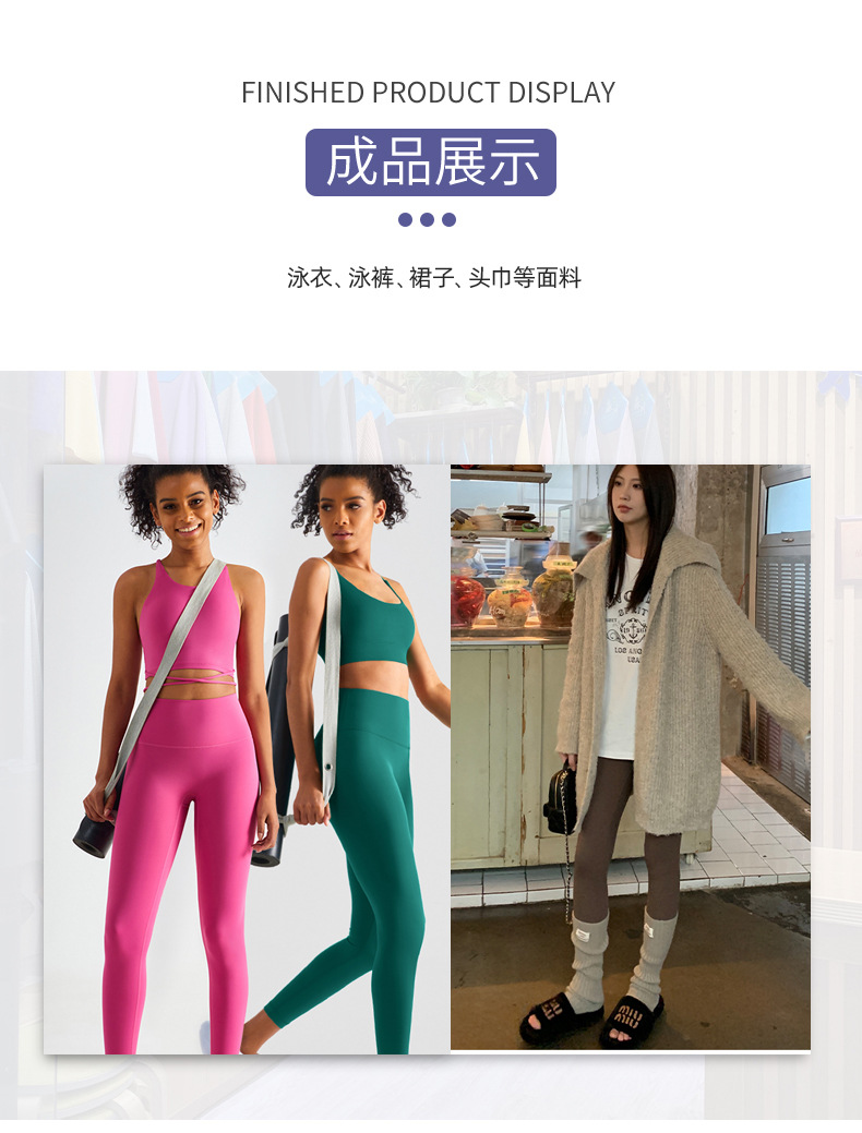 具体用途 瑜伽服,服饰,运动服装,休闲服面料,瑜伽运动服装,防晒面罩、