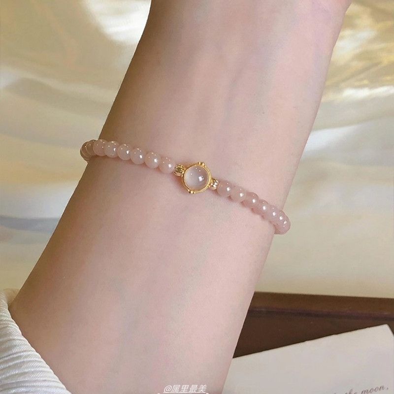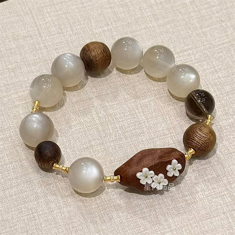 [ 杏仁栀子」小众设计感气质手串桃花沉香月光石串珠手链百搭手饰