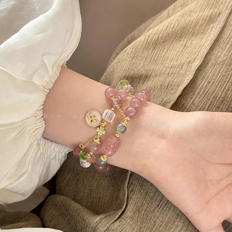 桃の花のイチゴの結晶のピンクの数珠のブレスレットの女性を募集します。