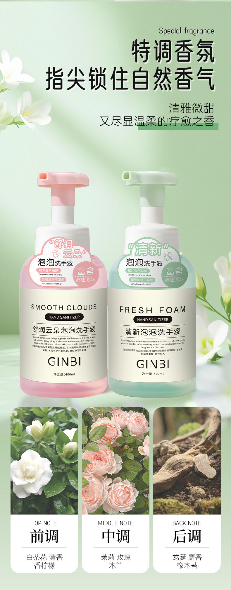 吟美爆款香氛泡沫洗手液清洁滋润保湿泡沫慕斯家用大容量代发批发
