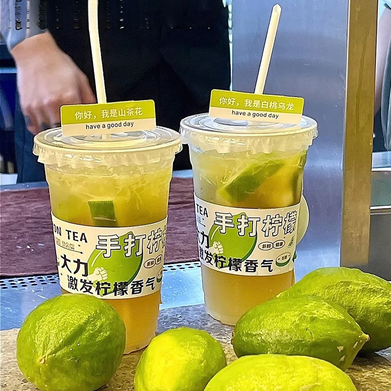 暴打手打柠檬茶杯子网红一次性带盖摆摊的500/700ml冷饮高颜值杯