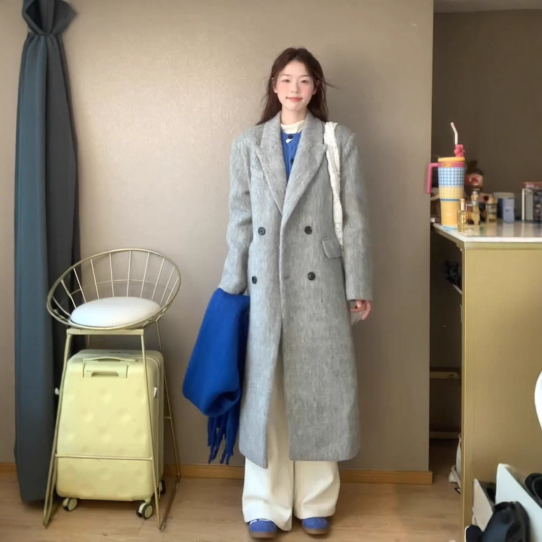 グレーウールコート女性のための 2025 秋と冬の新しいメイラード韓国ヘップバーンスタイル厚いウールコートトレンディ