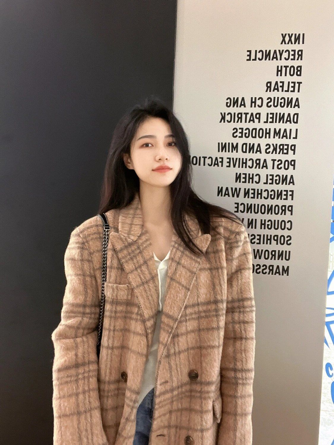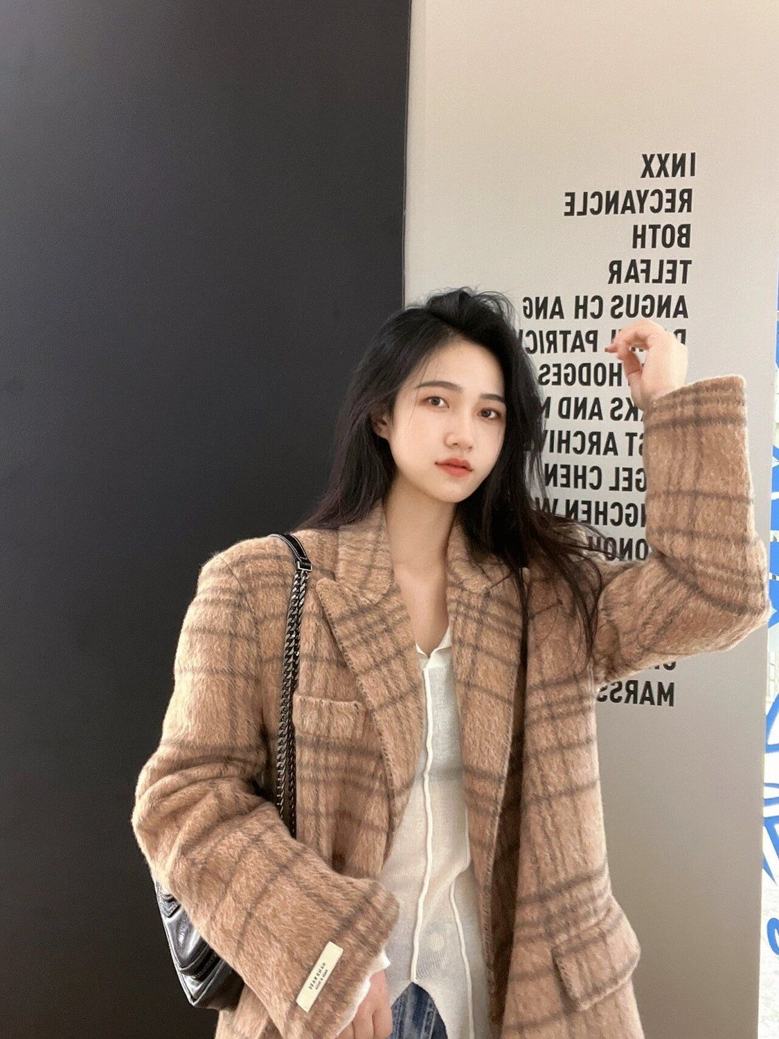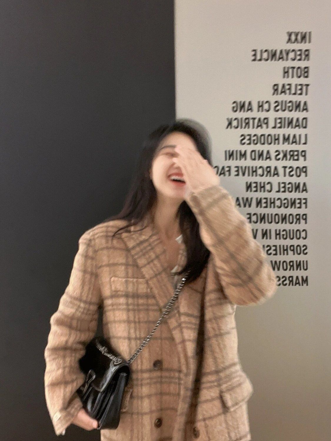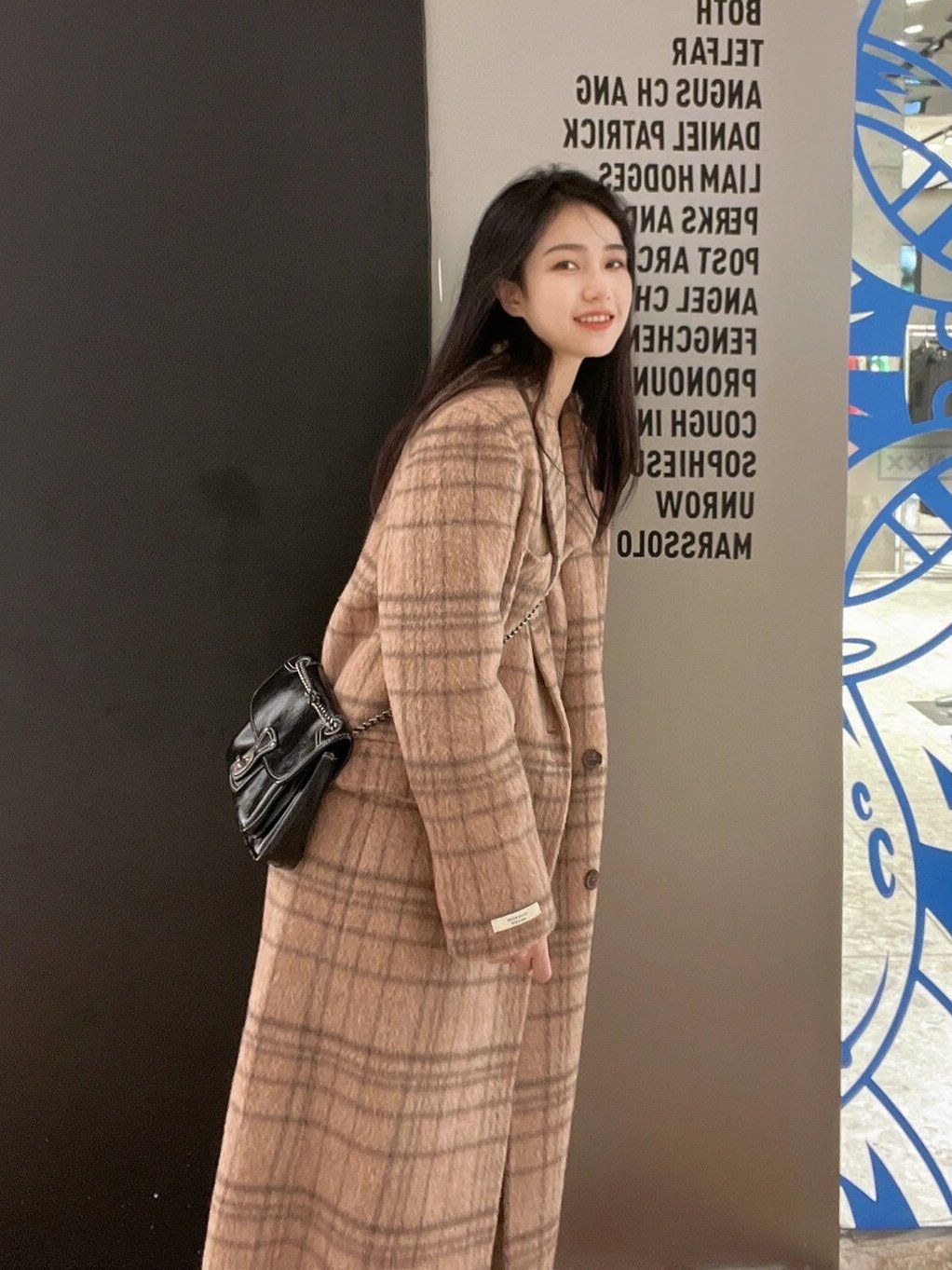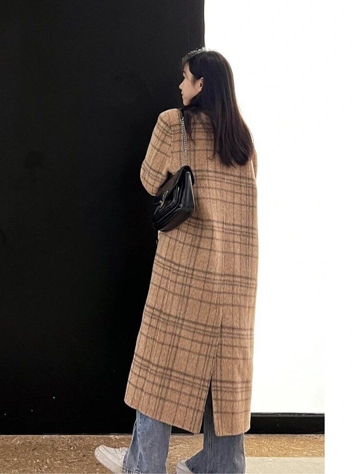 チェック柄ウールコート女性のための 2025 秋と冬の新しいメイラード韓国カジュアルスタイル厚いウールコートトレンディ