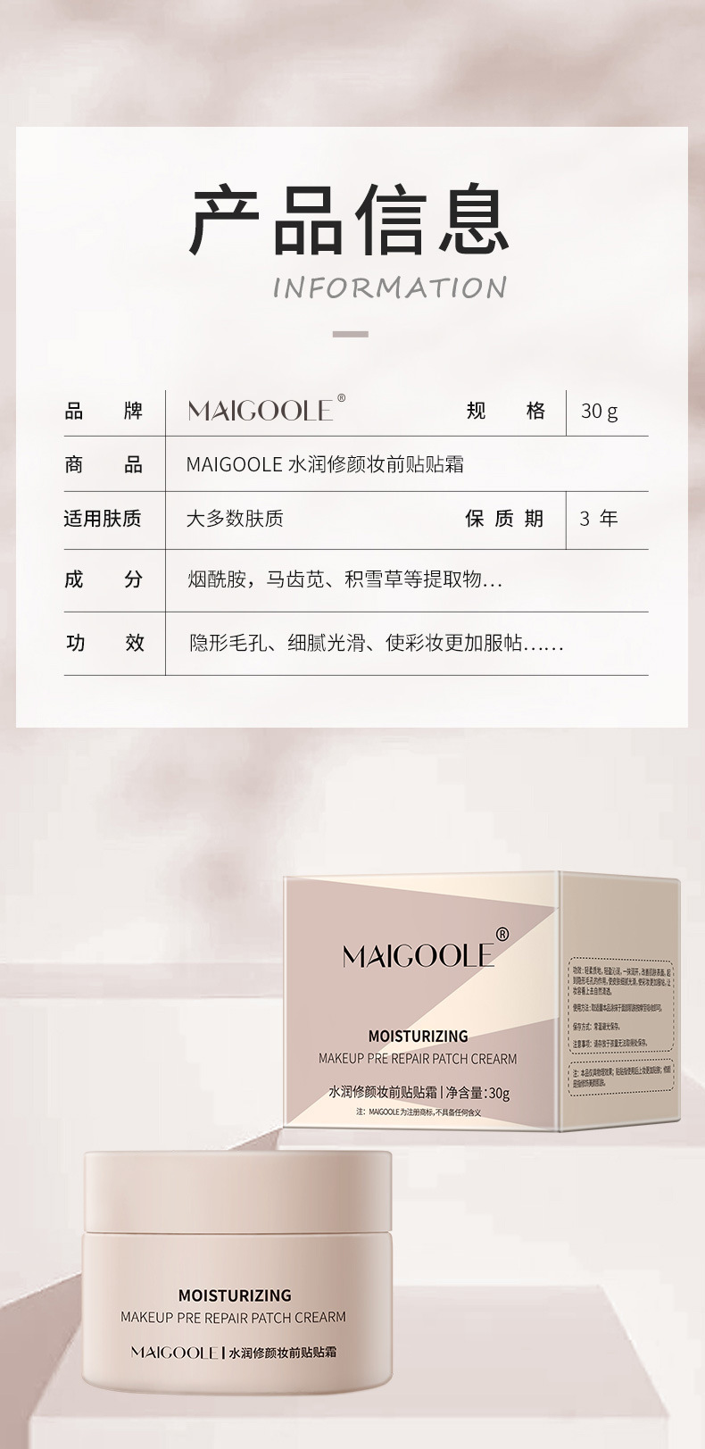 玫黛琳水润修颜妆前贴贴霜隐形毛孔持久不脱妆脸部遮瑕妆前隔离霜