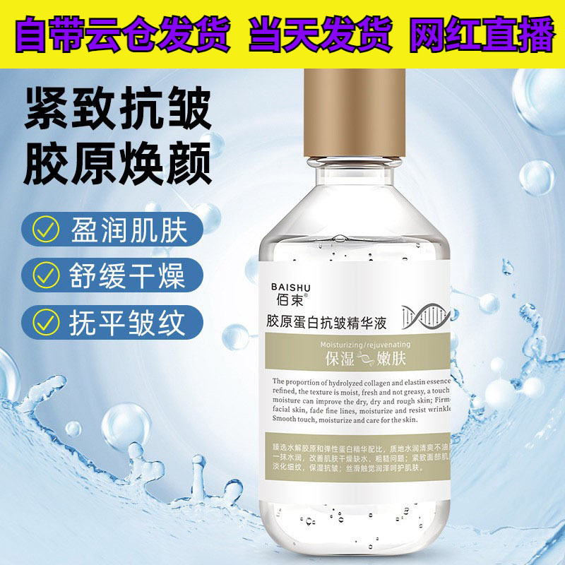 コラーゲンエッセンスは肌に潤いを与え、潤いを与え、乾燥を改善し、小じわを薄くし、肌に潤いを与えます。