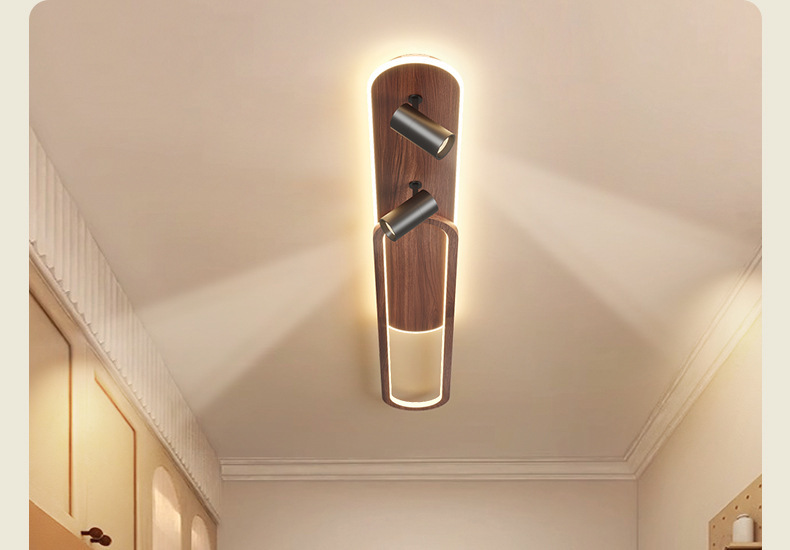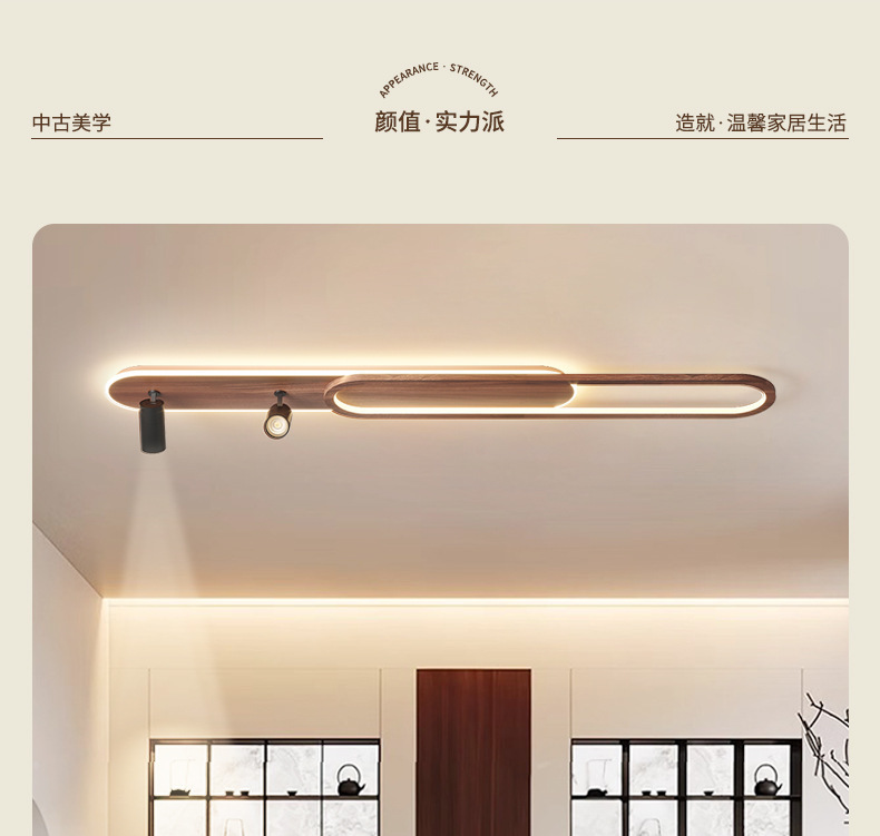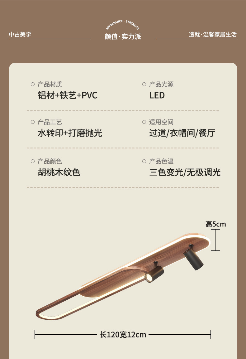 中古风过道走廊灯简约木纹长条射灯客厅LED吸顶灯入户玄关衣帽间