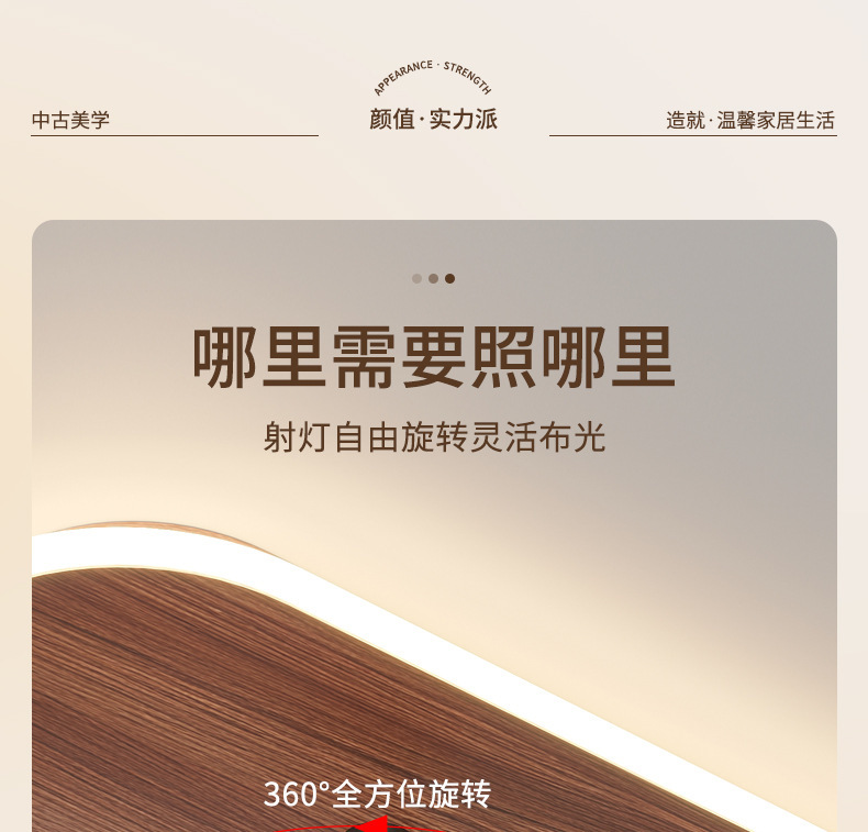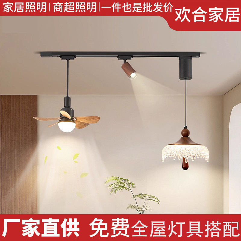 餐厅风扇灯胡桃木色复古水滴客厅高级感轨道带射灯饭厅吧台吊灯