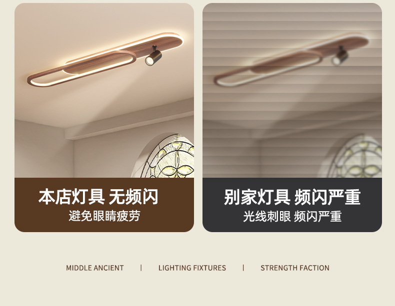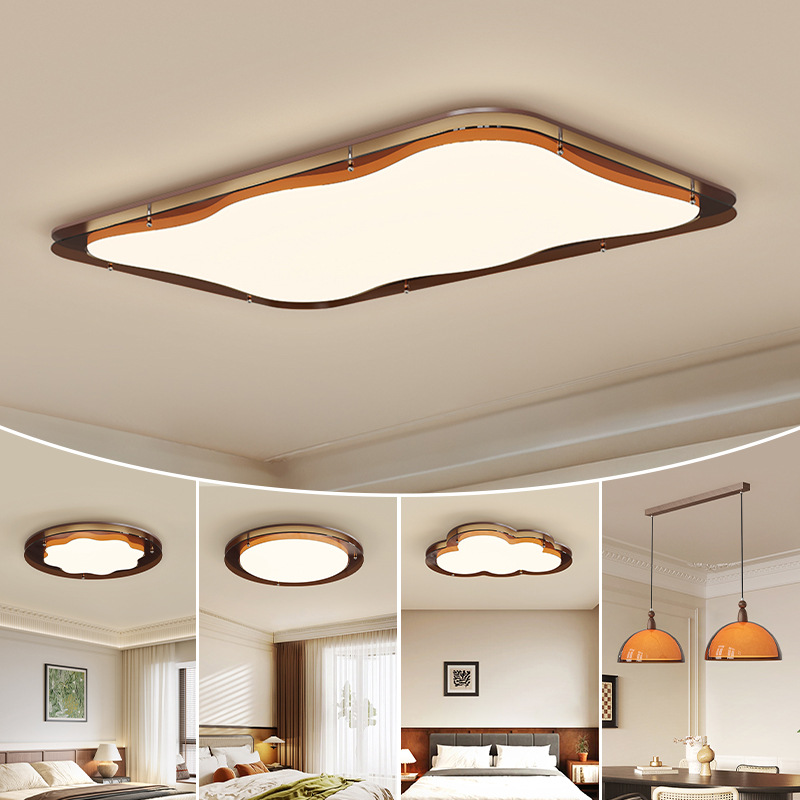 フルハウスセット中古風超薄客間家庭用ホールシンプル胡桃木目天井灯広東中山灯具