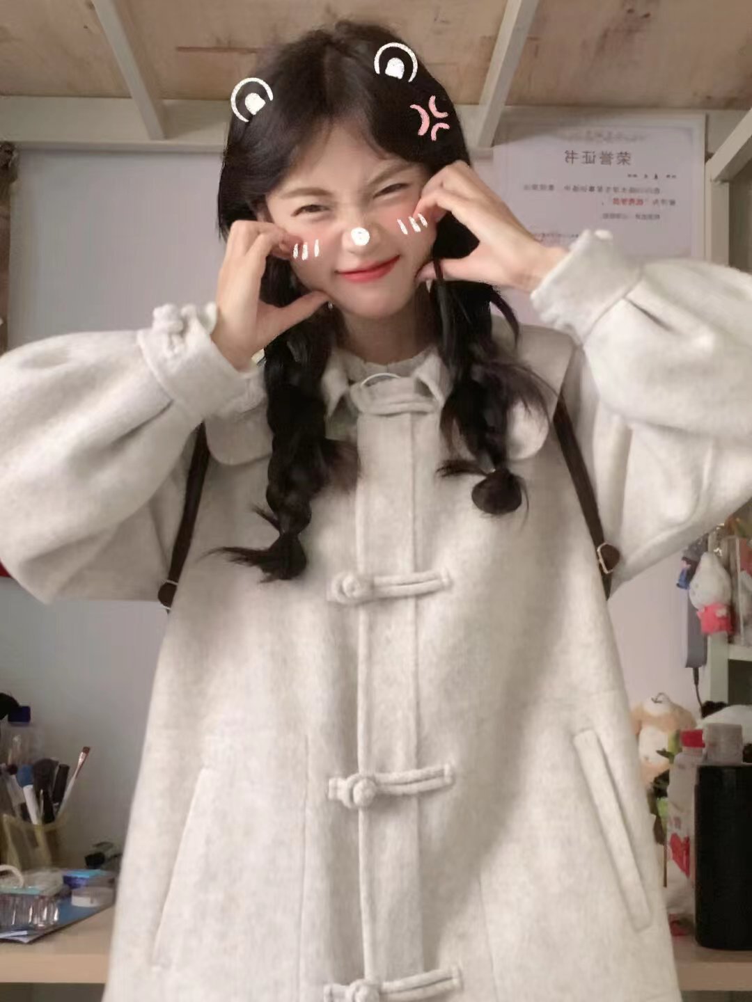 小柄な女性のためのカレッジスタイルのウールコート、ミドル丈の2025冬の新しいスタイルの人形の襟の気質ウールコートトレンディ