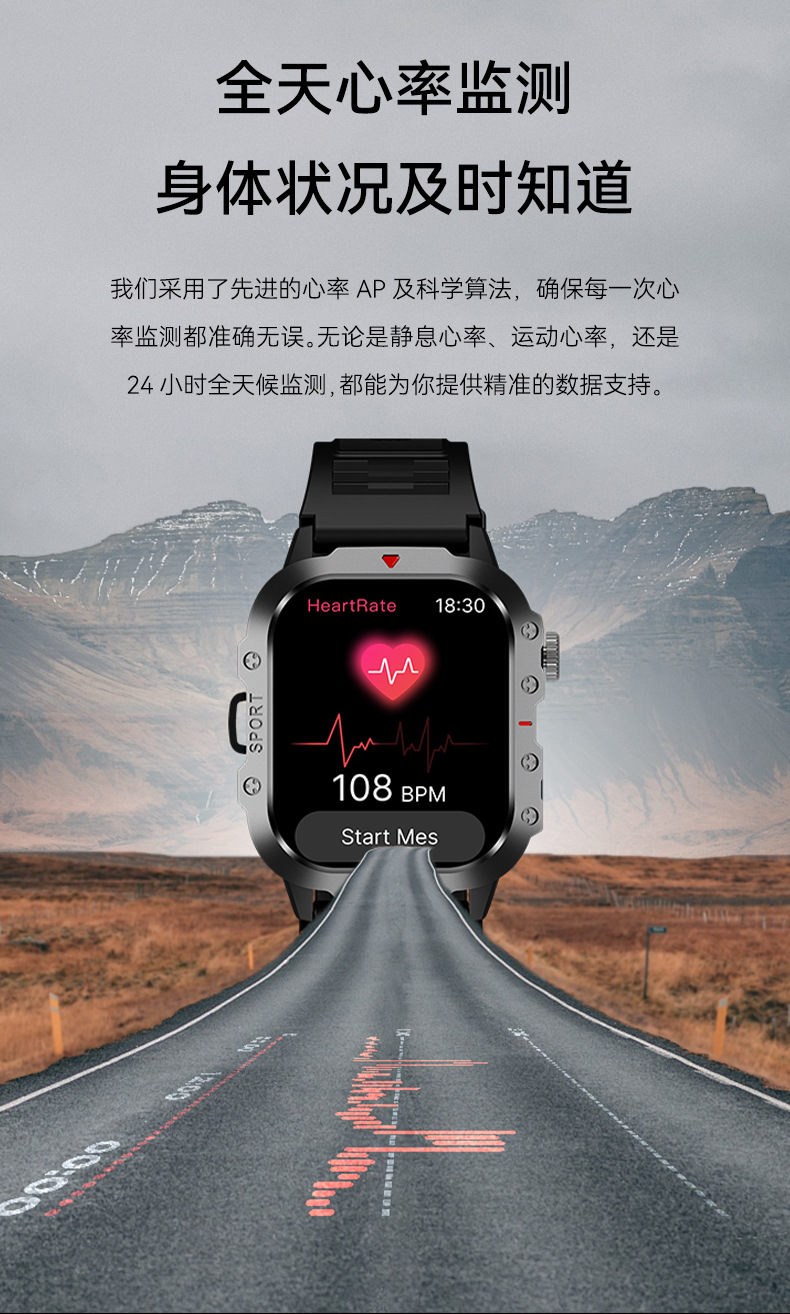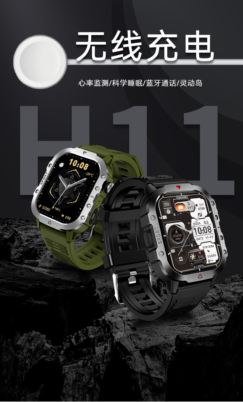 智能手表H11 心率血氧血压睡眠监测蓝牙通话男士运动户外跨境新款