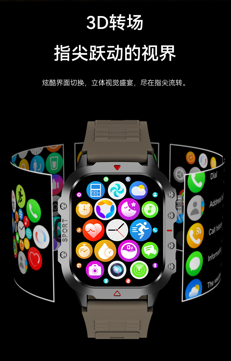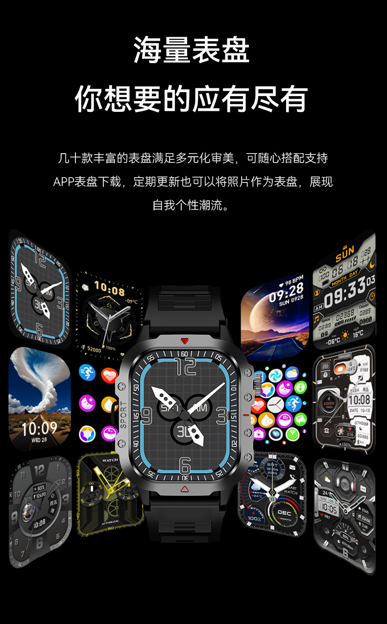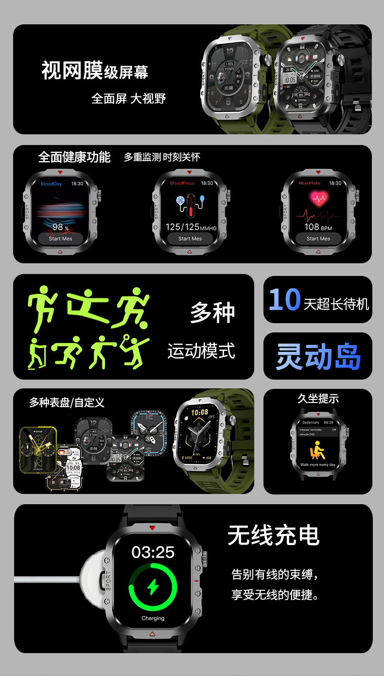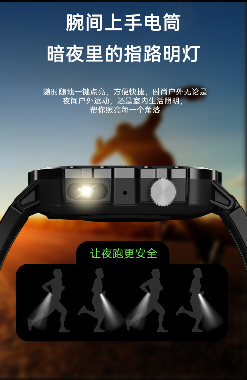 新款H12智能手表无线充户外灵动岛带手电筒心率睡眠监测运动手环