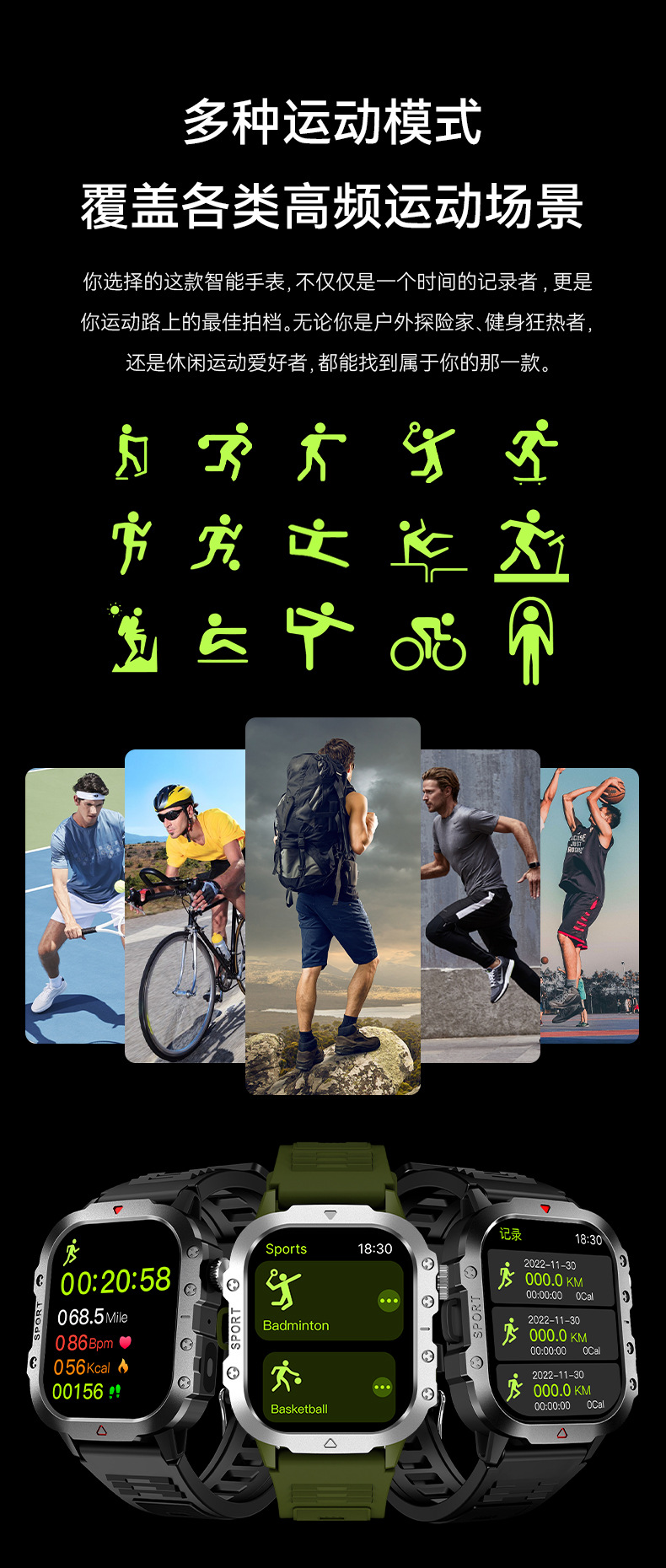 Q11智能手表运动模式1.73inch睡眠检测计步闹钟健康检测心率血压