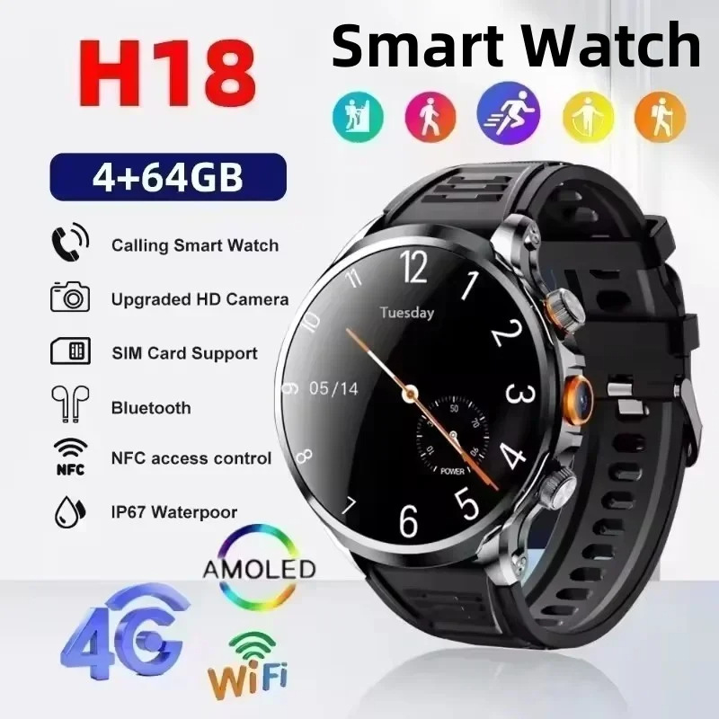 H18スマートウォッチ5Gグローバル対応SIMカード対応1.85インチ丸型スクリーン+独立アプリスマートヘルスモニタリング