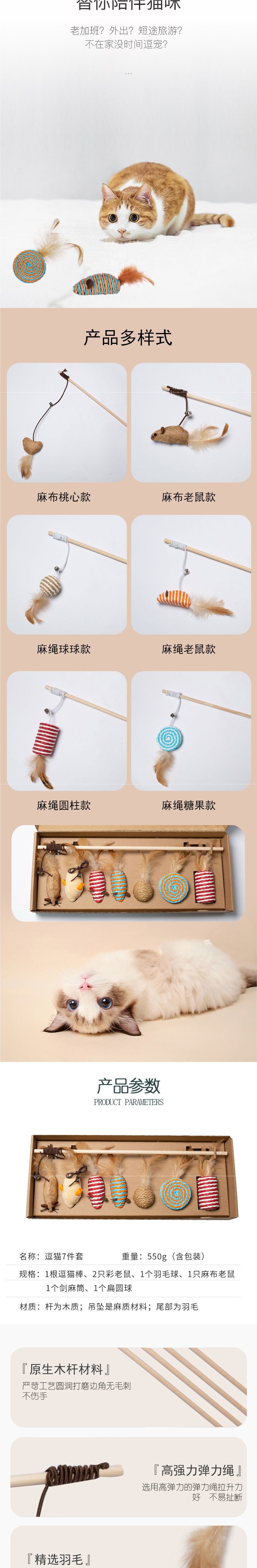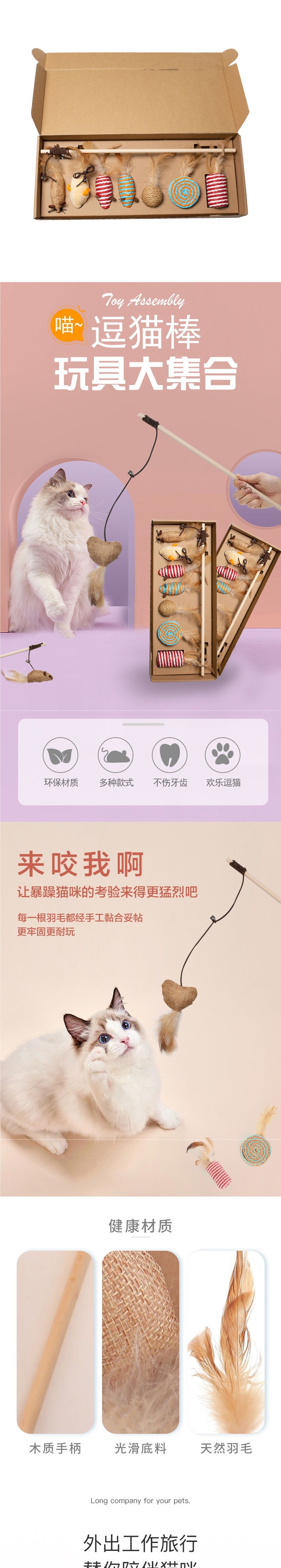 猫のおもちゃ セルフエンジョイメントセット 猫面白いスティック ギフトボックス ロングポール フェザーベル 子猫耐性 7点セット