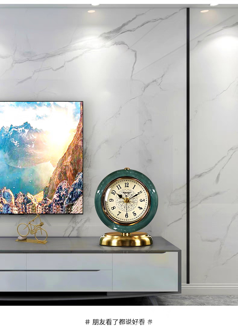 轻奢欧式摇摆客厅简约时钟美式静音卧室床头钟表台式装饰摆件座
