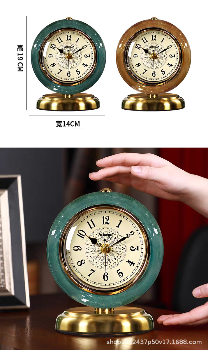 ヨーロッパのリビングルームの金属置時計装飾品時計置時計座る時計ライト高級クリエイティブ装飾時計アンティークレトロスタイル