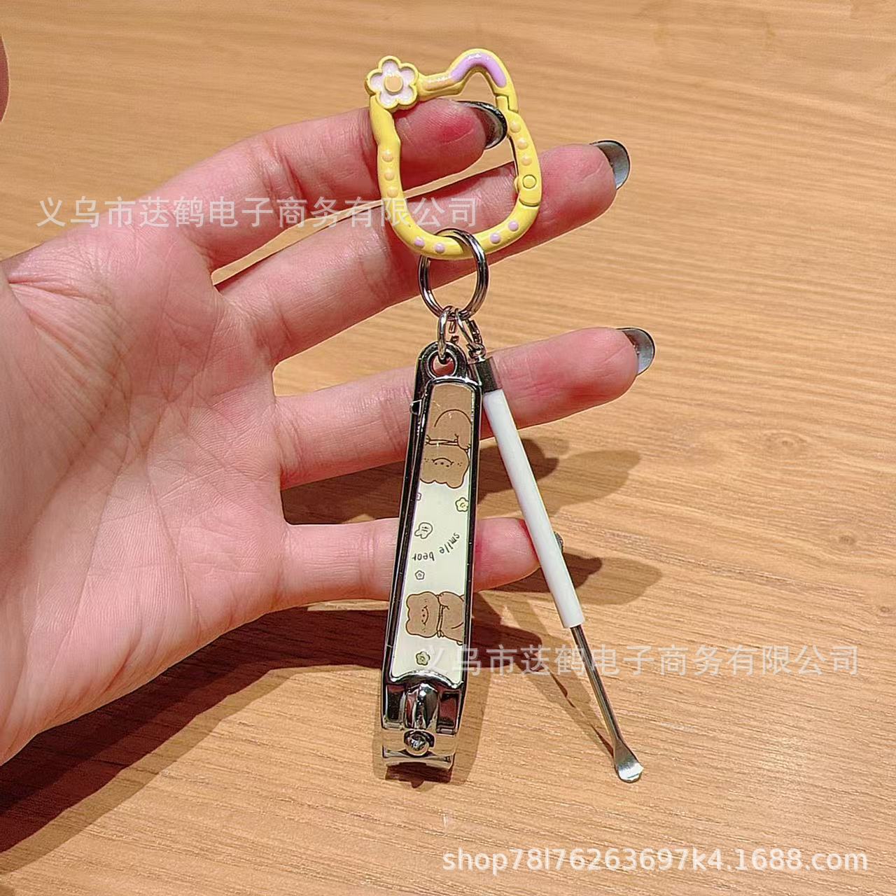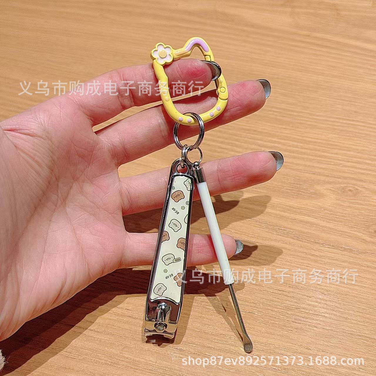 小猫钥匙扣指甲剪刀卡通可爱少女挂件挖耳勺套装创意书包挂饰情侣