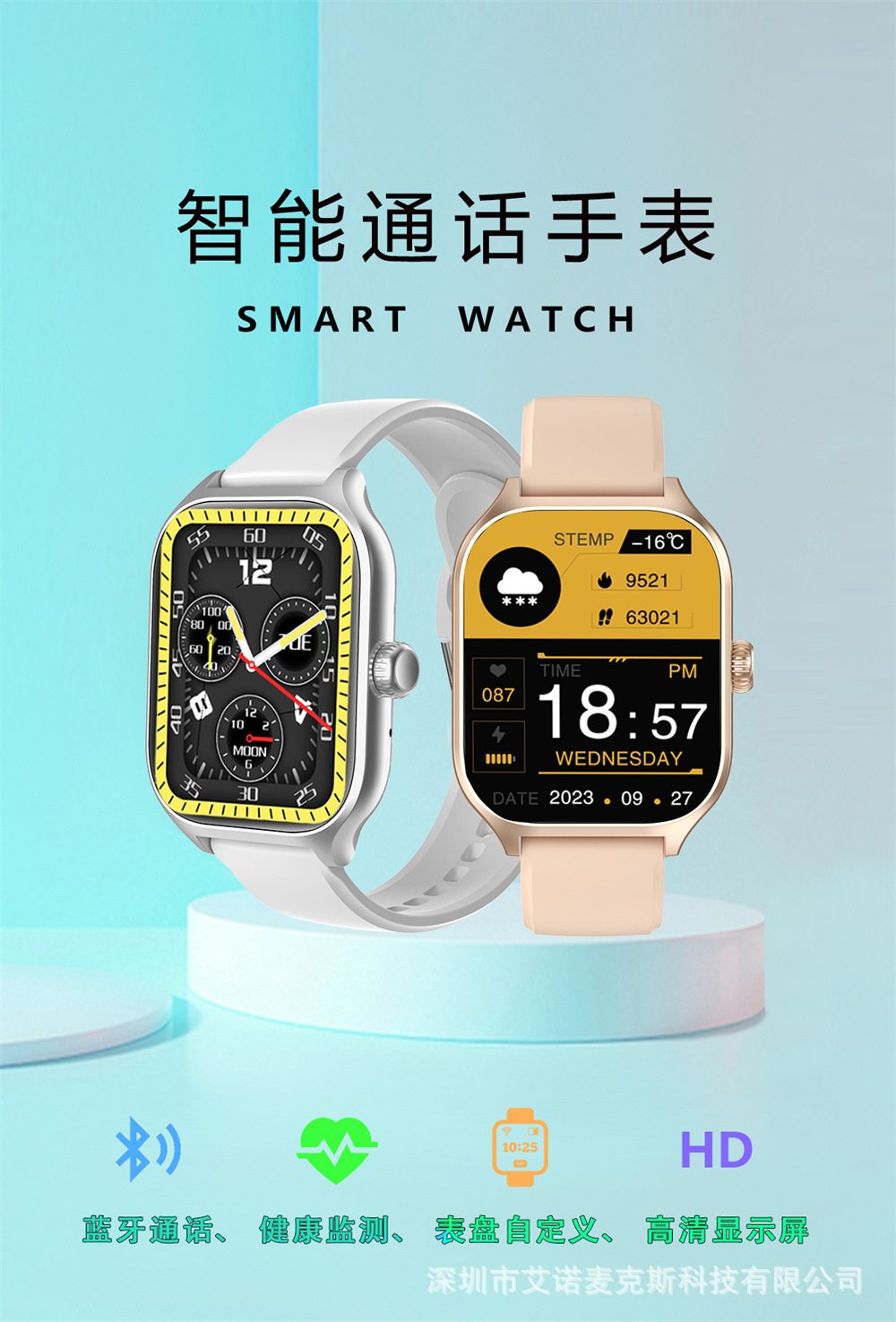 详细功能:灵动岛/夜间调节模式/眠监测/表盘市场/灭屏时间设置/扫码连接/自定义表盘/语音通话/语音助手/计步/手表语言切换/多种运动模式/盖手息屏/来电提醒/消息提醒/久坐提醒/闹钟提醒/喝水提醒/查找手环/表盘切换/亮度调节/秒表/计算器/计时/12/24小时切换/时钟设置/日历/音乐播放/心率/血压/血氧/计算器/联系人/多款UI风格/天气/游戏//熄屏亮时针等