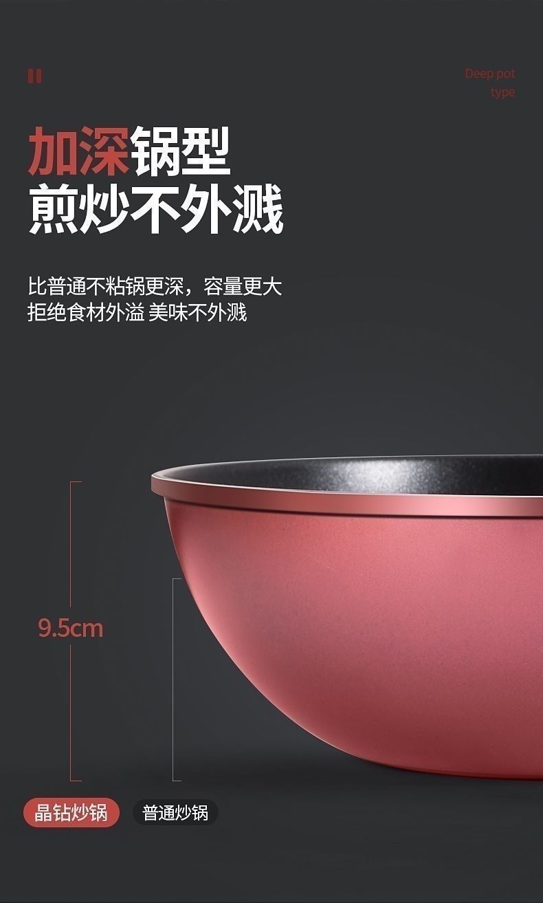 颜色 28cm晶钻炒锅【1-1人使用】无盖款,30cm晶钻炒锅【1-3人够用】无盖款,30CM晶钻炒锅【1-3人够用】带盖款,32cm晶钻炒锅【3-5人够用】无盖款,32cm晶钻炒锅【3-5人够用】有盖款,34cm晶钻炒锅【4-7人够用】无盖款,34cm晶钻炒锅【4-7人够用】有盖款