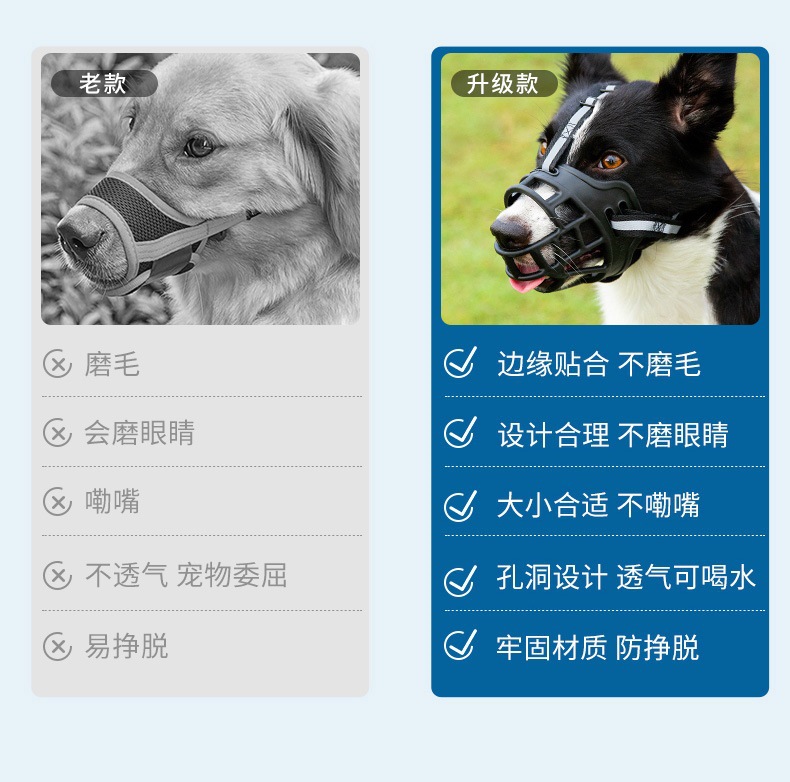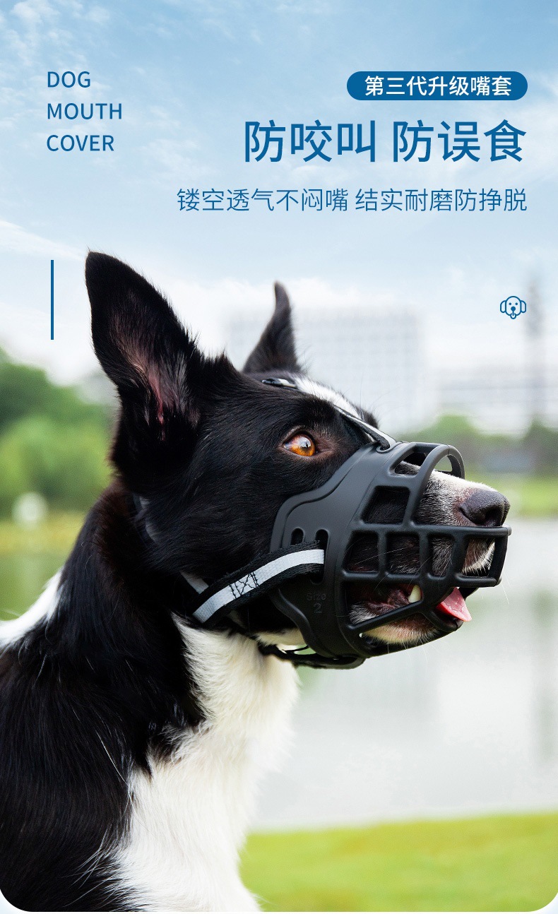 犬用マウスガード 反射性 第三世代 アップグレード 調整可能 噛みつき防止、吠え防止、食べ物を食べない 大型、中型、小型犬用マウスガード ペット用