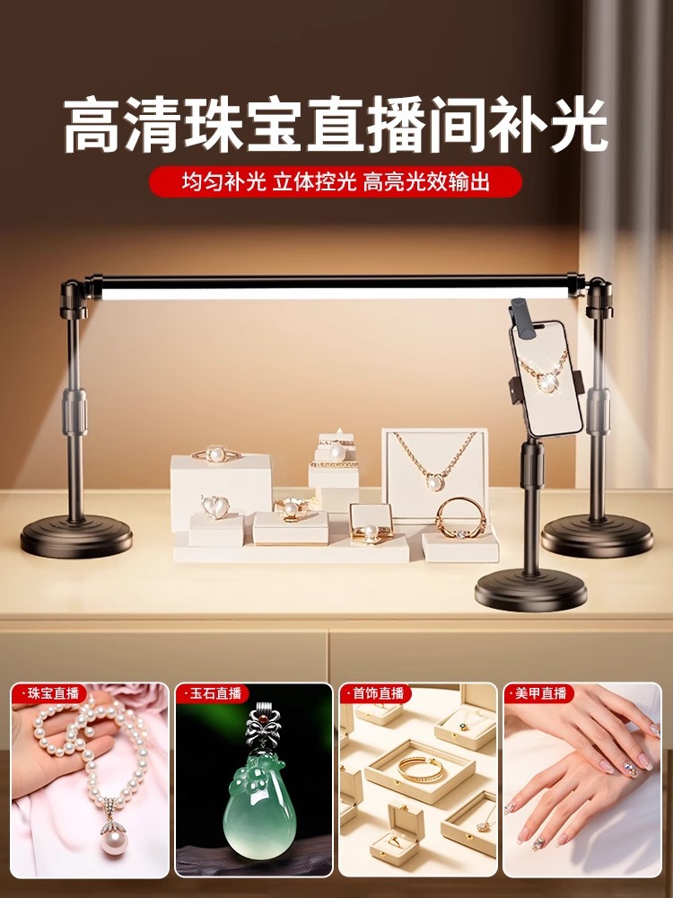 ジュエリーライブブロードキャストフィルライトライブブロードキャストデスクトップ静物画翡翠写真撮影LED照明アンカージュエリーマニキュアハンド